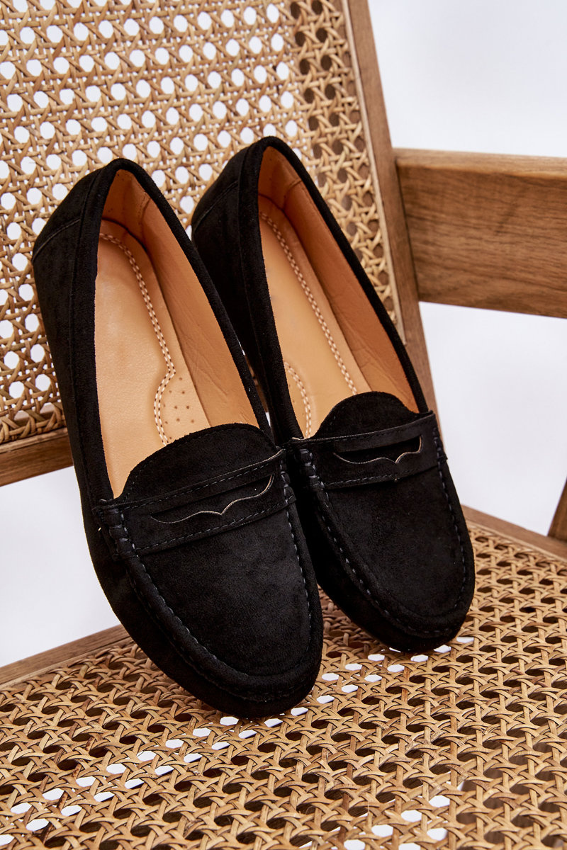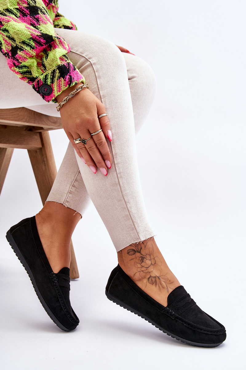 Mokasyny Damskie Klasyczne Zamsz Czarne Ivana
