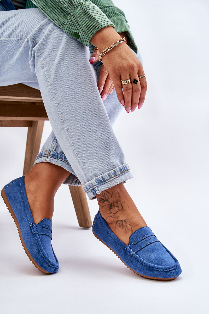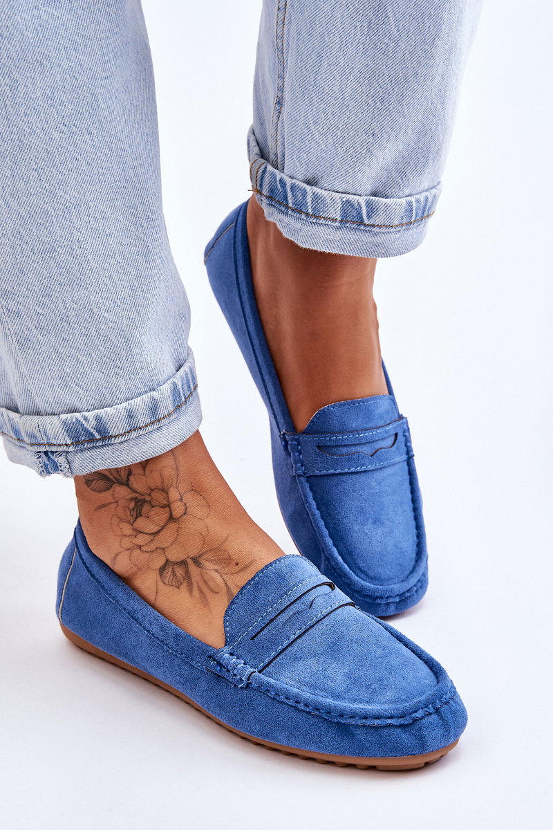Mokasyny Damskie Klasyczne Zamsz Niebieskie Ivana