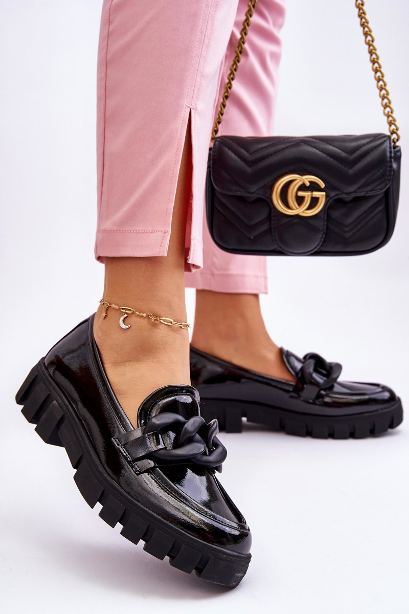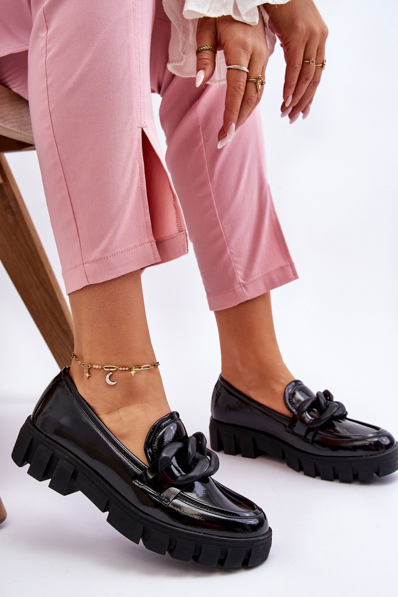 Mokasyny Damskie Lakier Platforma Czarne Bennett