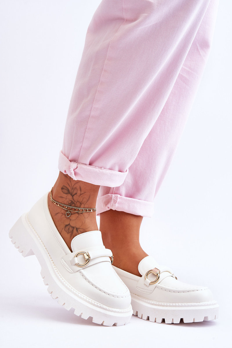 Mokasyny Damskie Masywna Platforma Białe Calypso