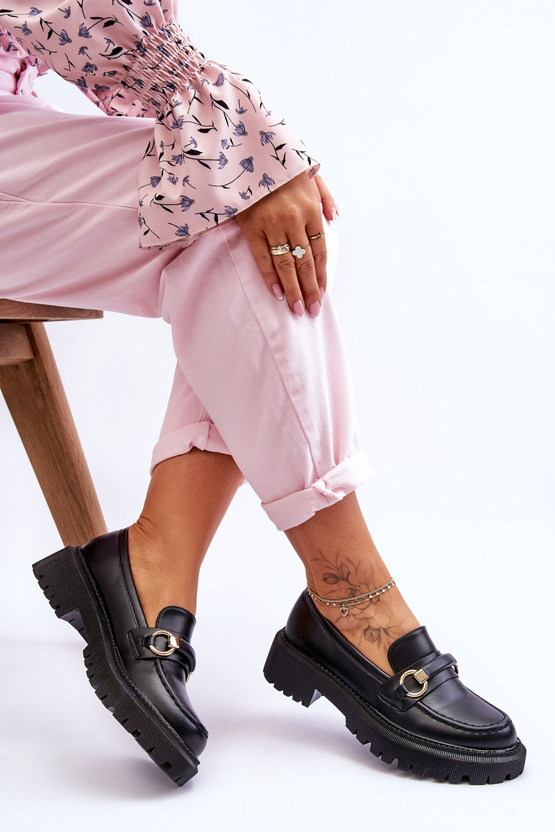 Mokasyny Damskie Masywna Platforma Czarne Calypso