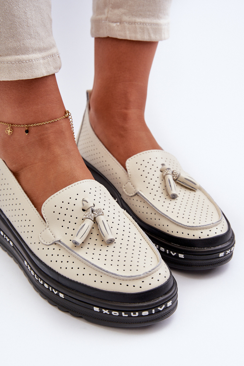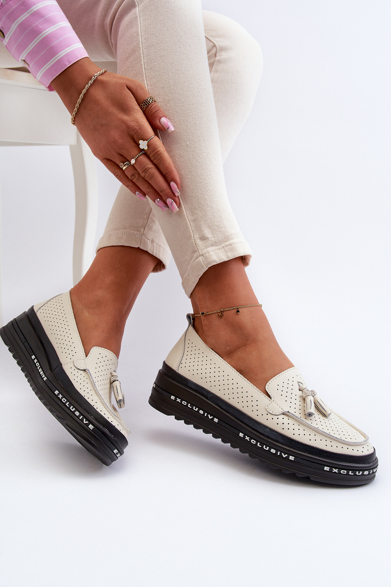 Mokasyny Damskie Na Platformie Skóra Beżowe Assetnima 24PB18-7176