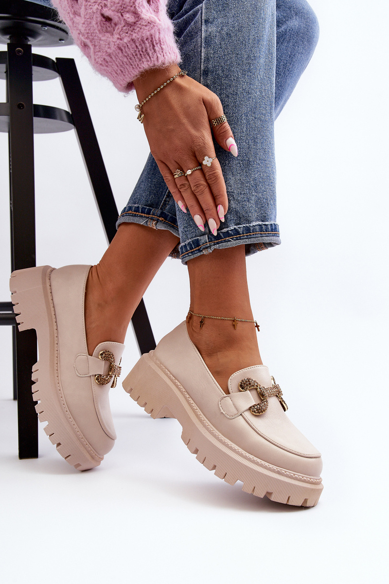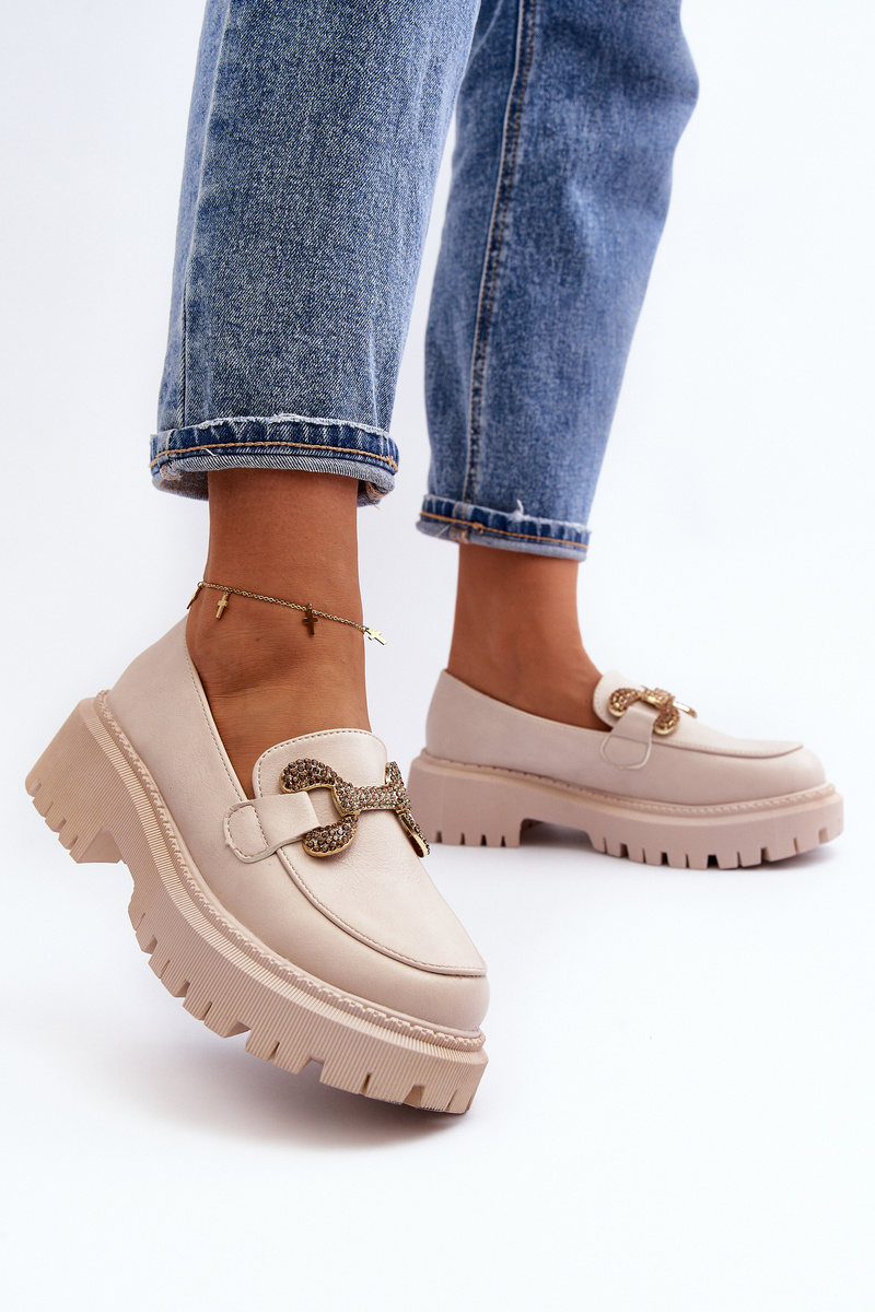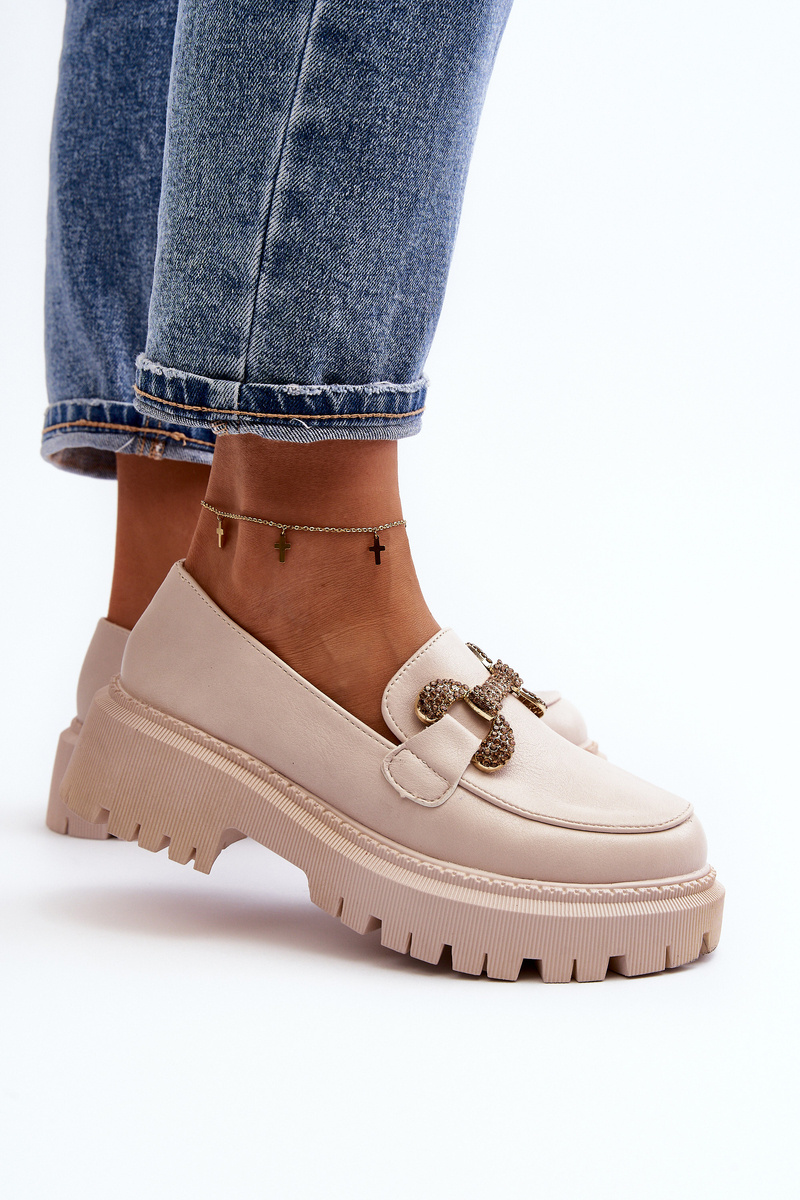 Mokasyny Damskie Ozdoba Jasnobeżowe Gargi H8-309