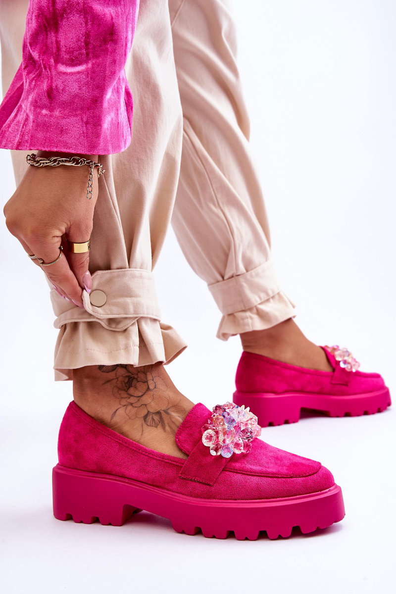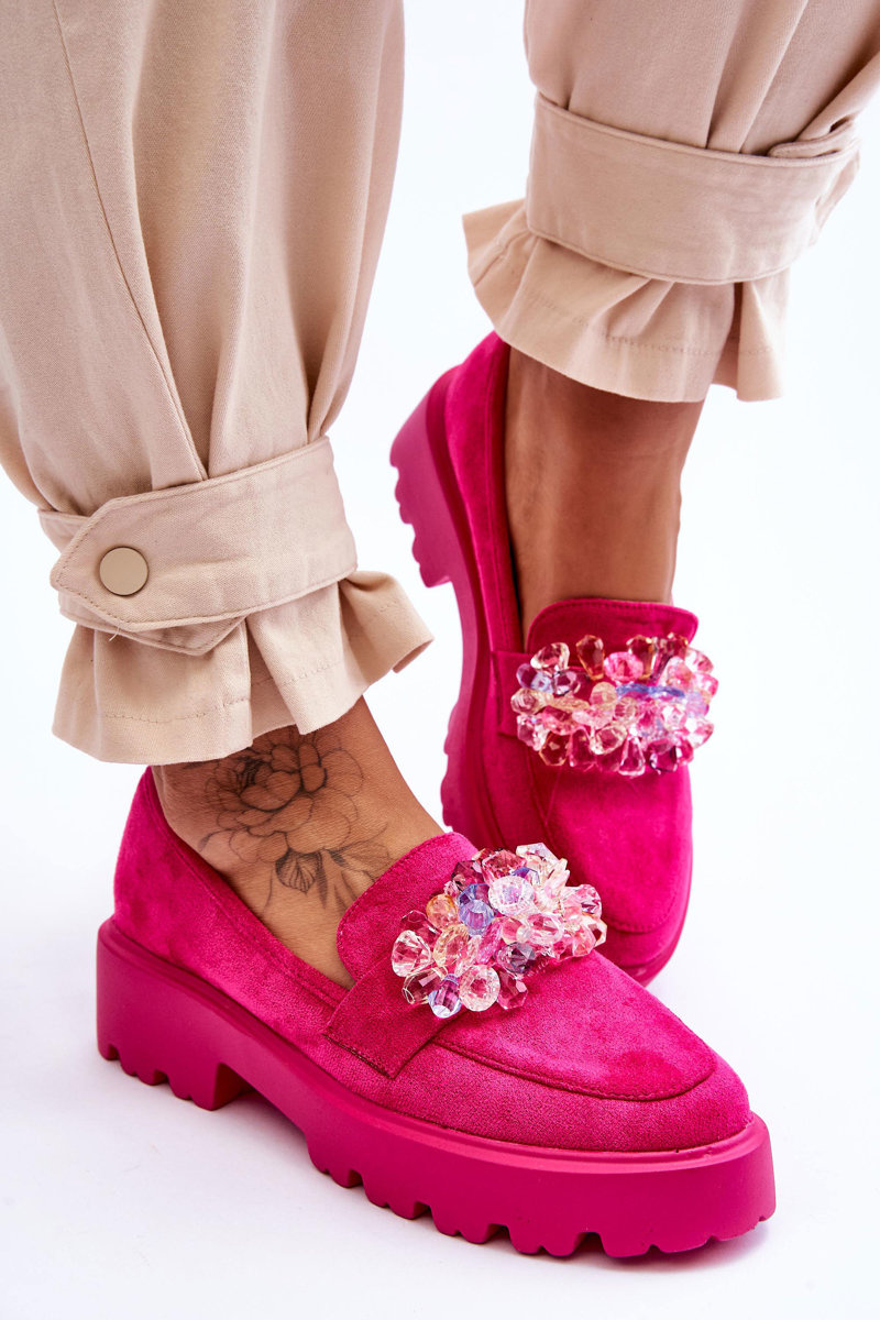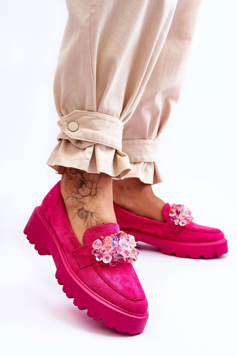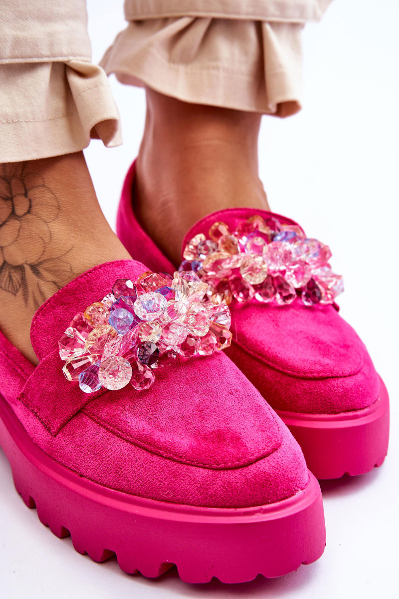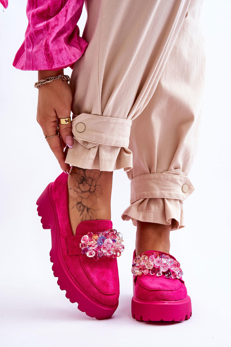 Mokasyny Damskie Platforma Ozdoby Fuksja Brenda