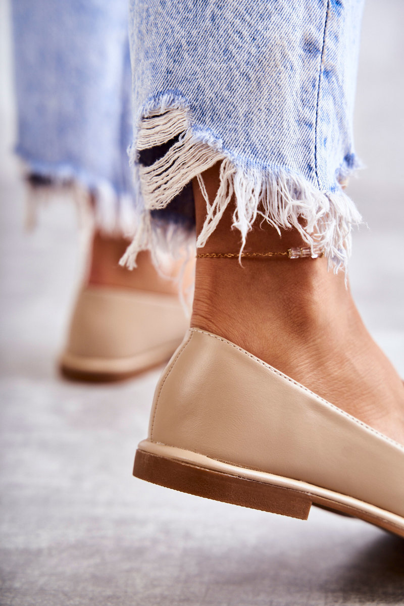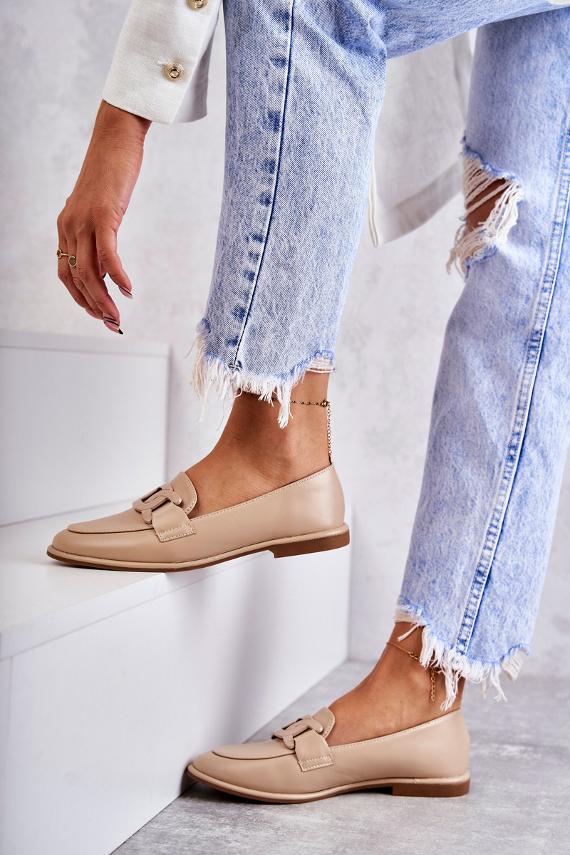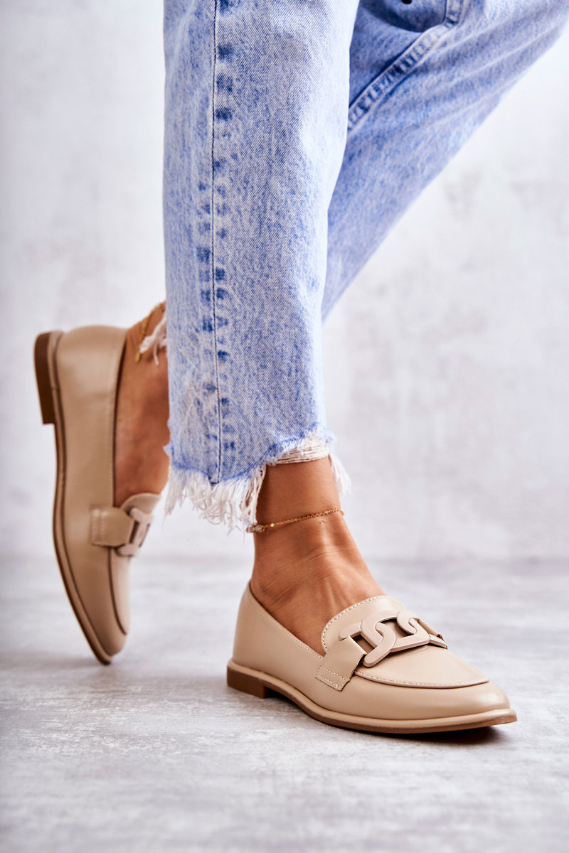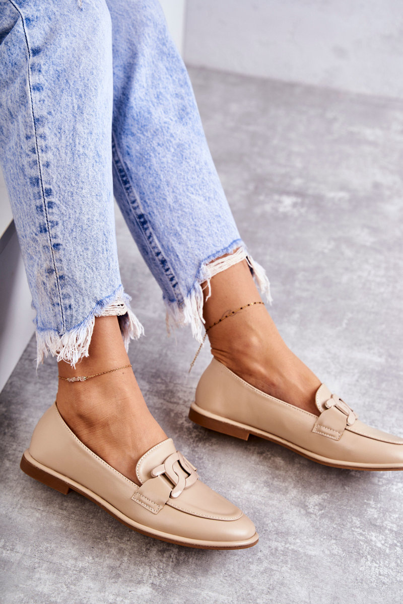 Mokasyny Damskie Skóra Ozdoba Beżowe Kerrie