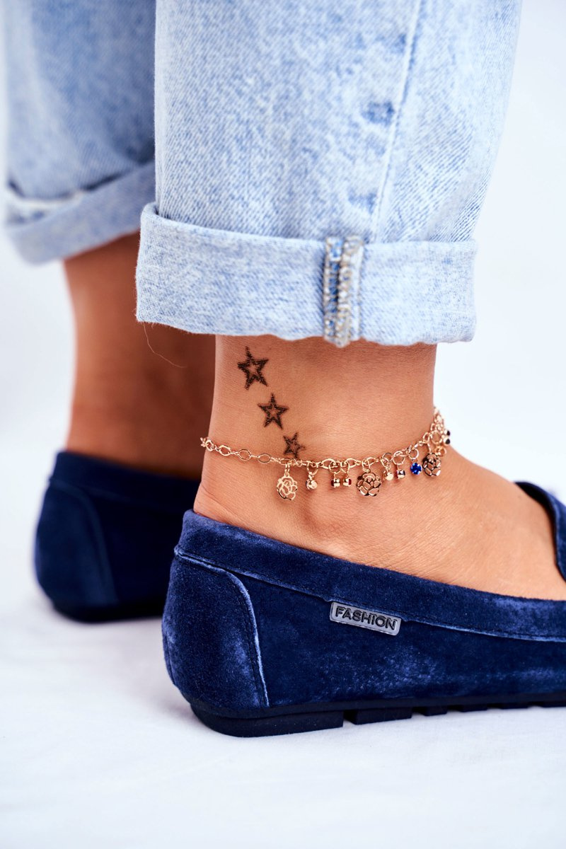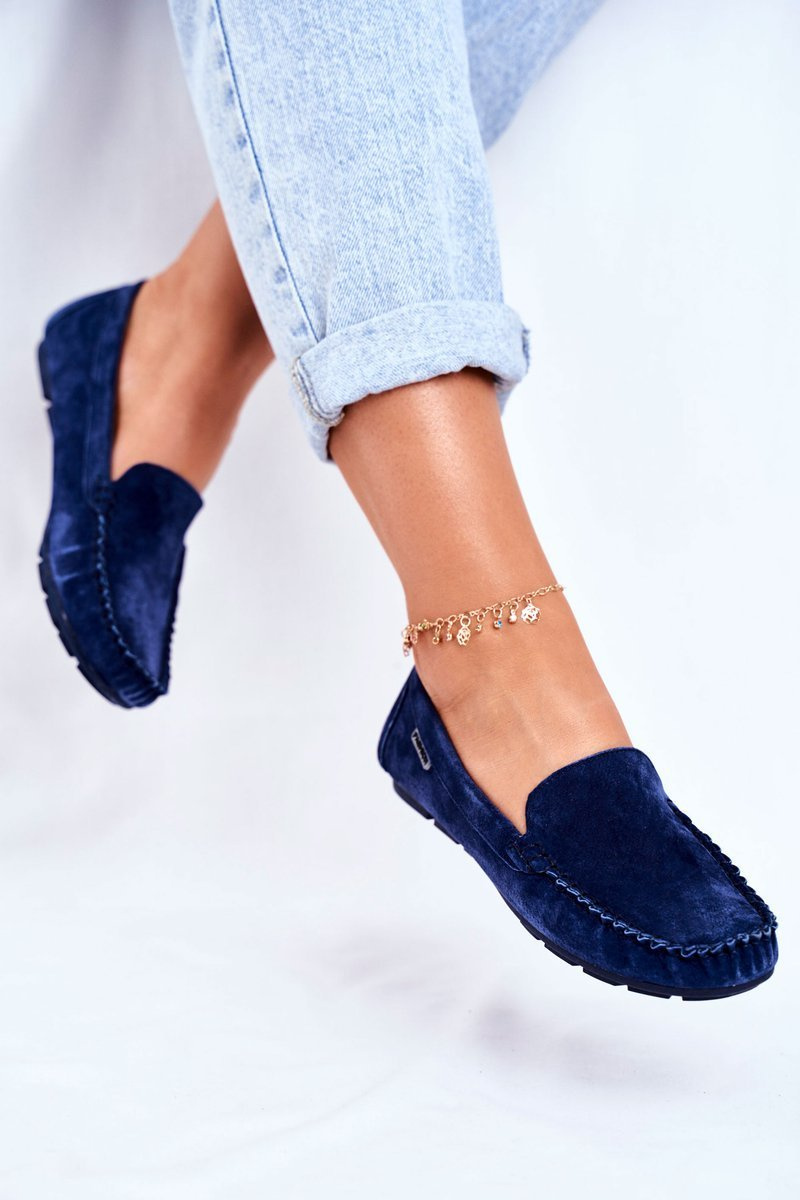 Mokasyny Damskie Skóra Zamsz Niebieskie Papito