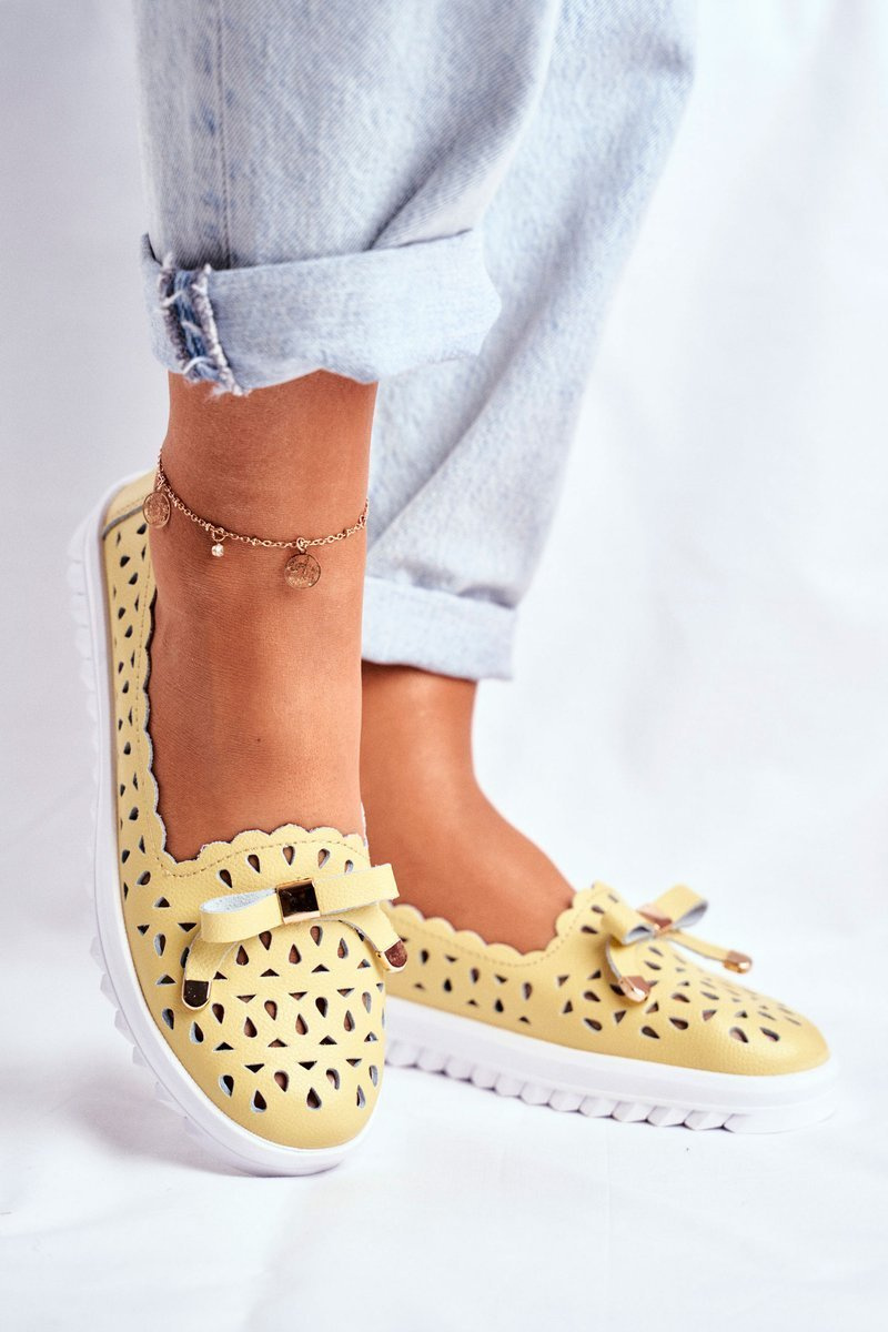 Mokasyny Damskie Skórzane Ażurowe LR71515 Żółte Murrieta