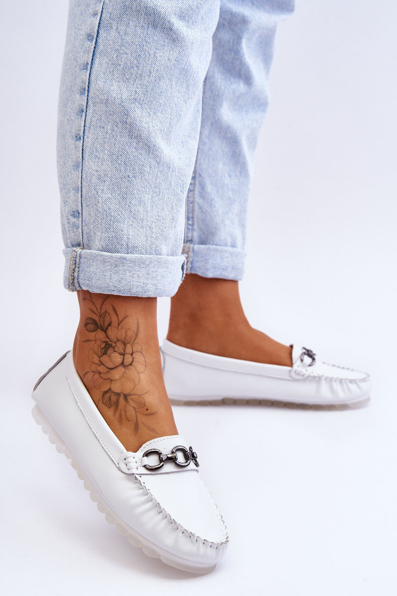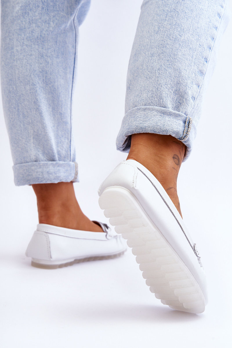 Mokasyny Damskie Wygodne Skóra Białe Miguel