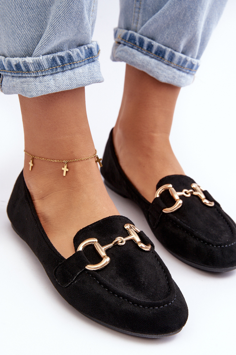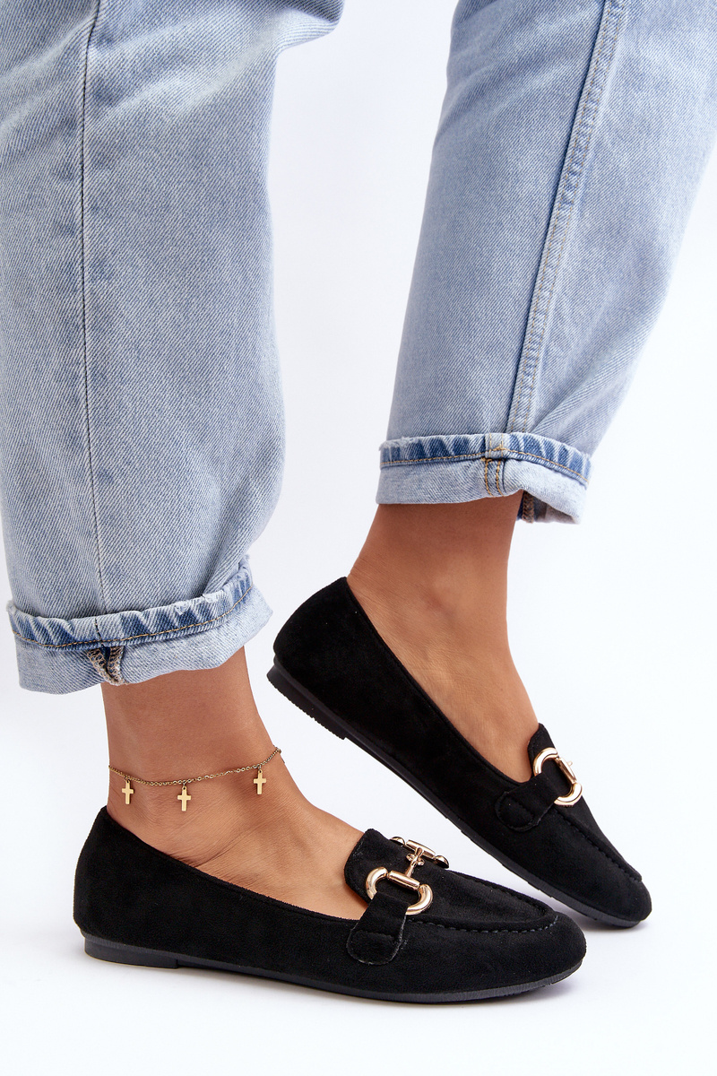Mokasyny Damskie Z Ozdobą Ekozamsz Czarne Winalita 9988-61