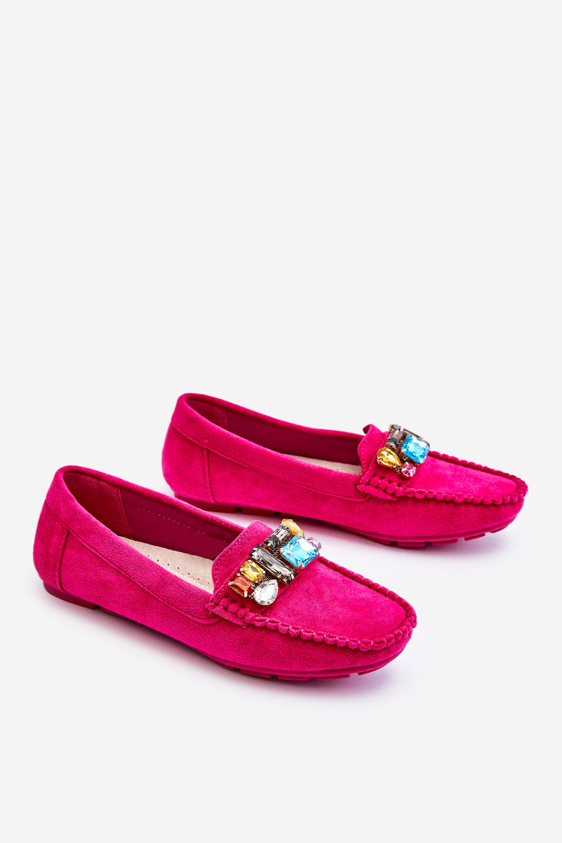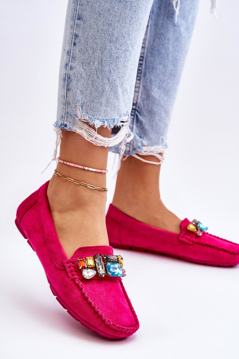 Mokasyny Damskie Zamsz Kryształki Fuksja Lucille