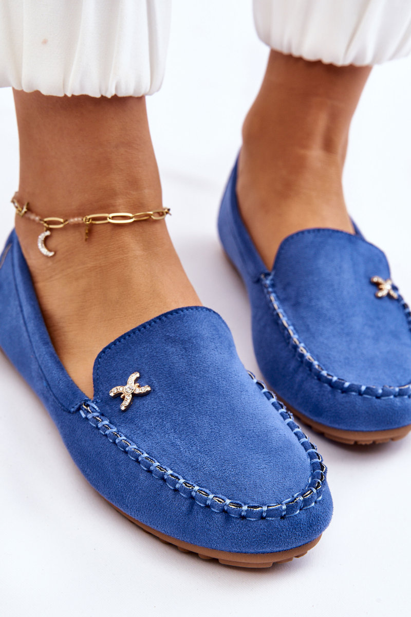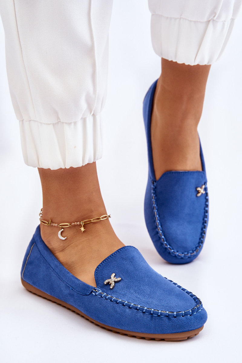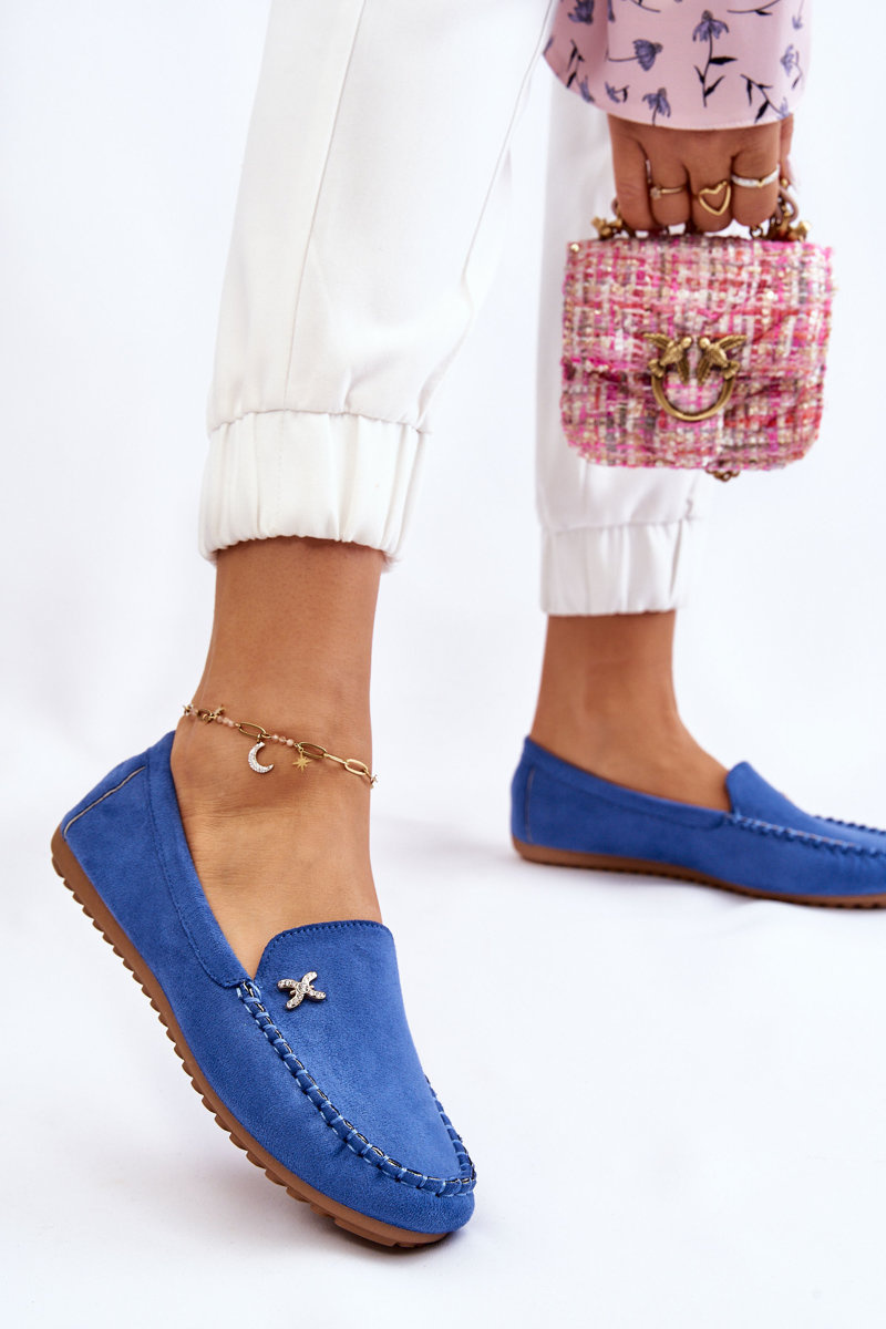 Mokasyny Damskie Zamsz Ozdoba Niebieskie Leah