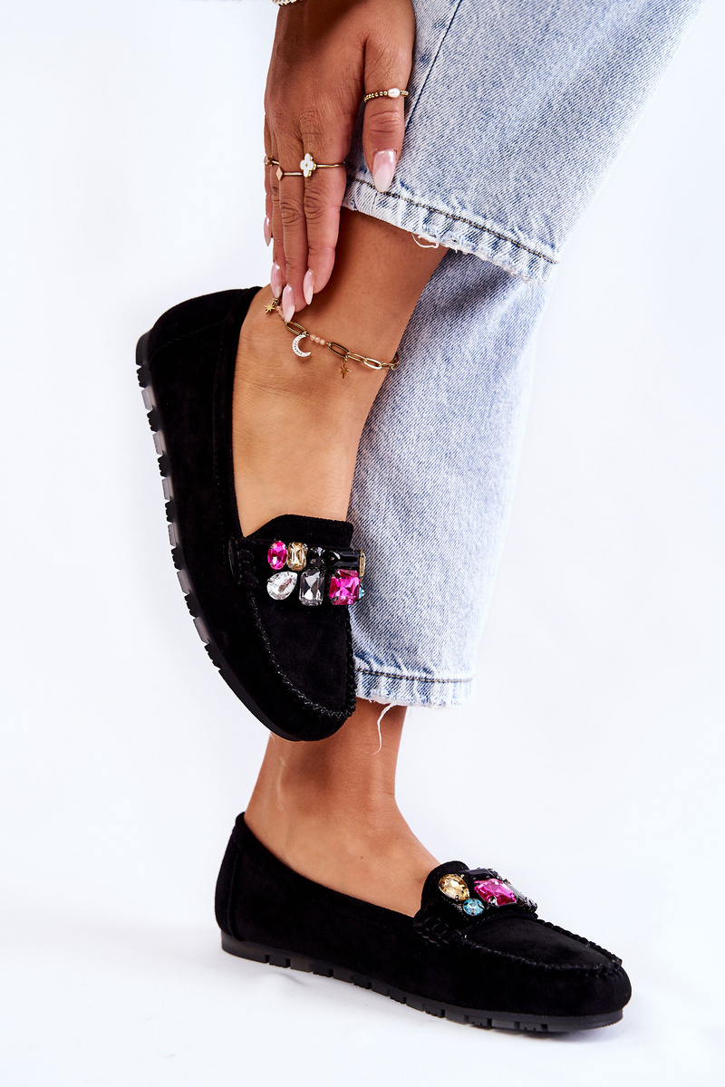 Mokasyny Damskie Zamsz Ozdoby Czarne Janetta