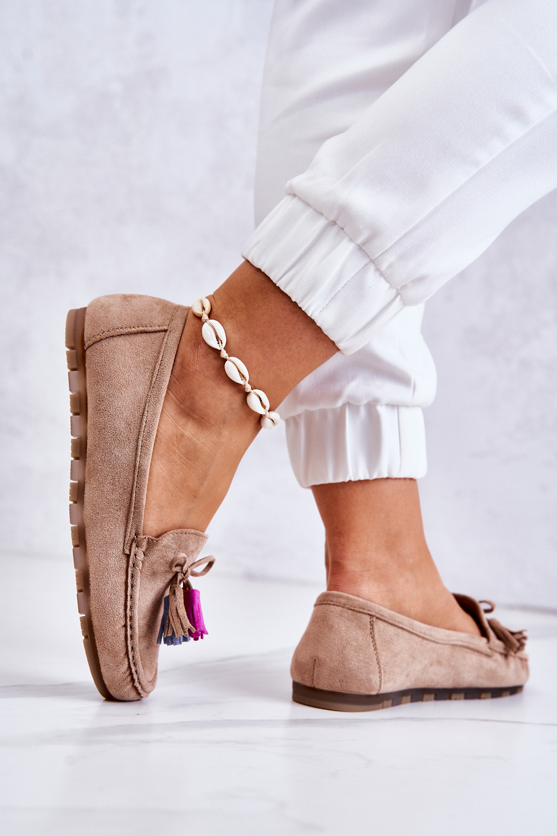 Mokasyny Damskie Zamsz Wygodne Ciemnobeżowe Wilessa