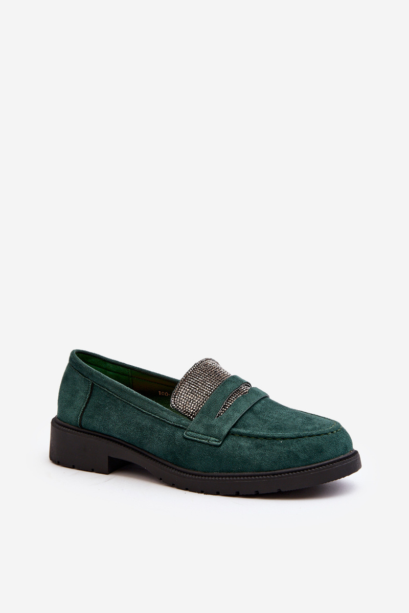 Mokasyny Damskie Zdobione Ciemnozielone Dananei 100-337