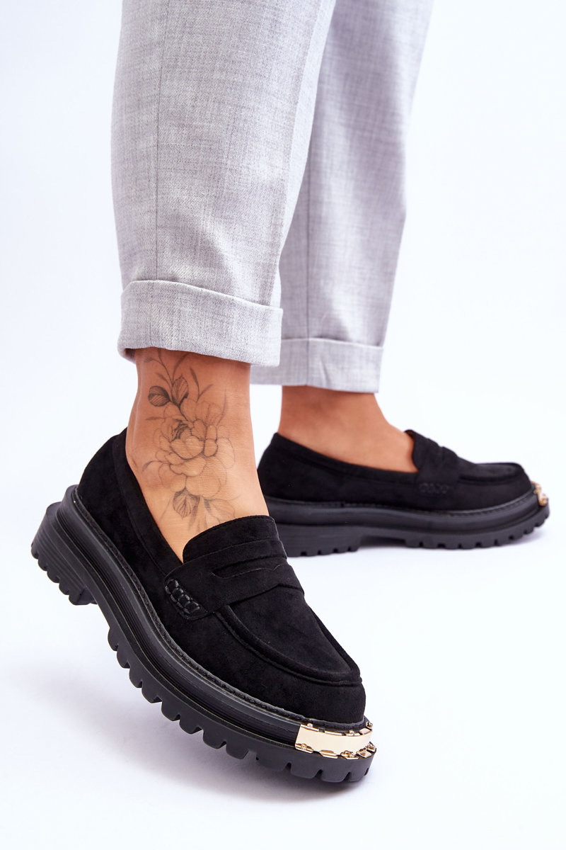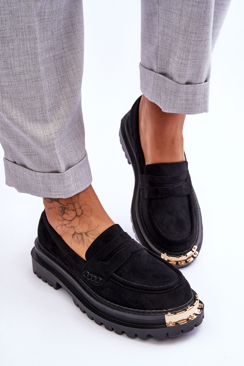 Mokasyny Klasyczne Zamsz Ozdoba Czarne Monaro