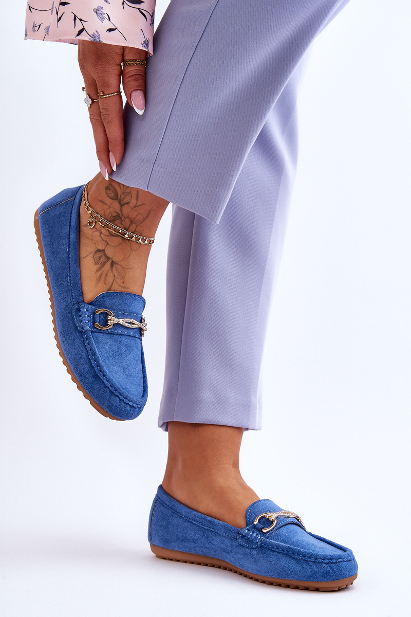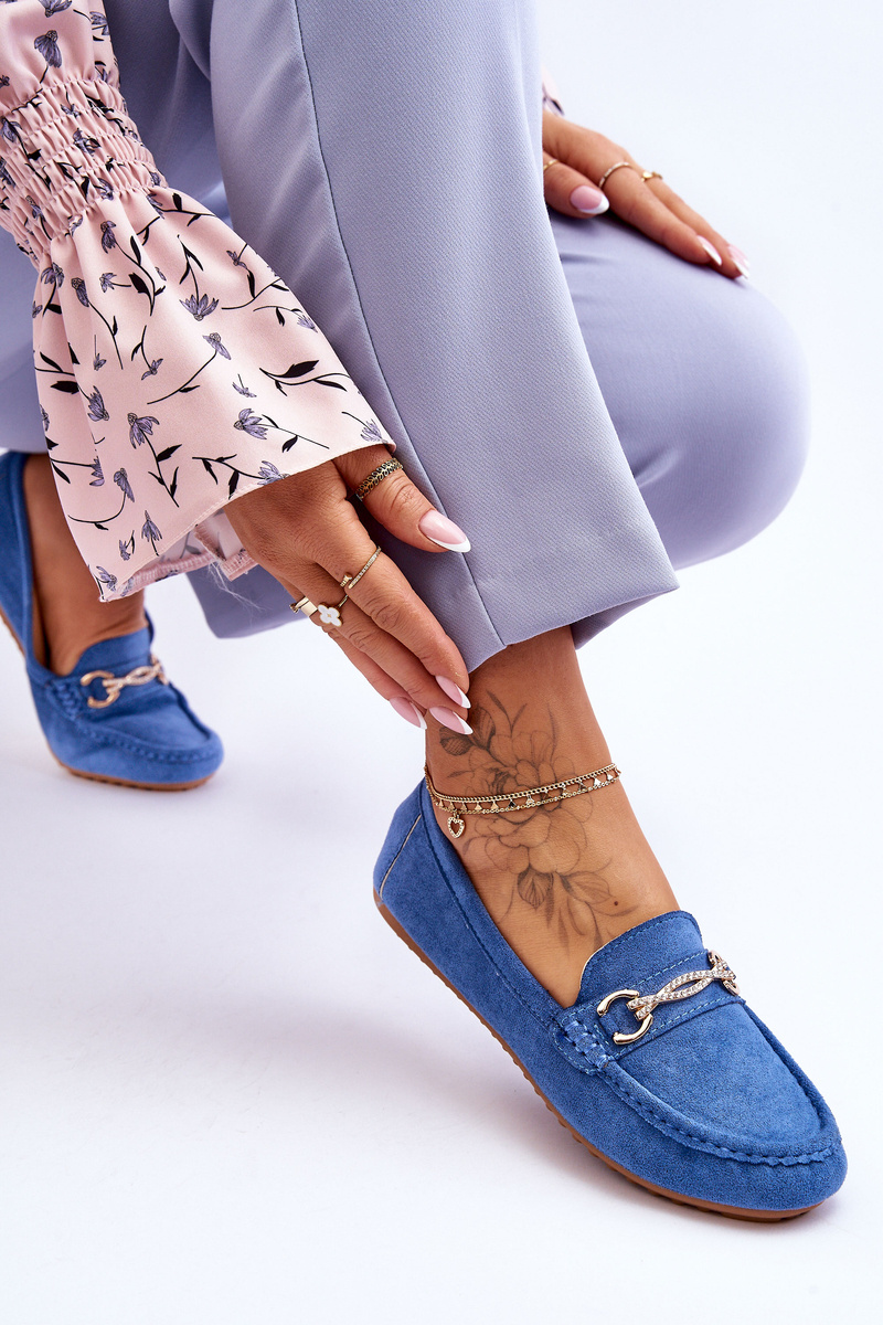Mokasyny Klasyczne Zamsz Ozdoba Niebieskie Amera