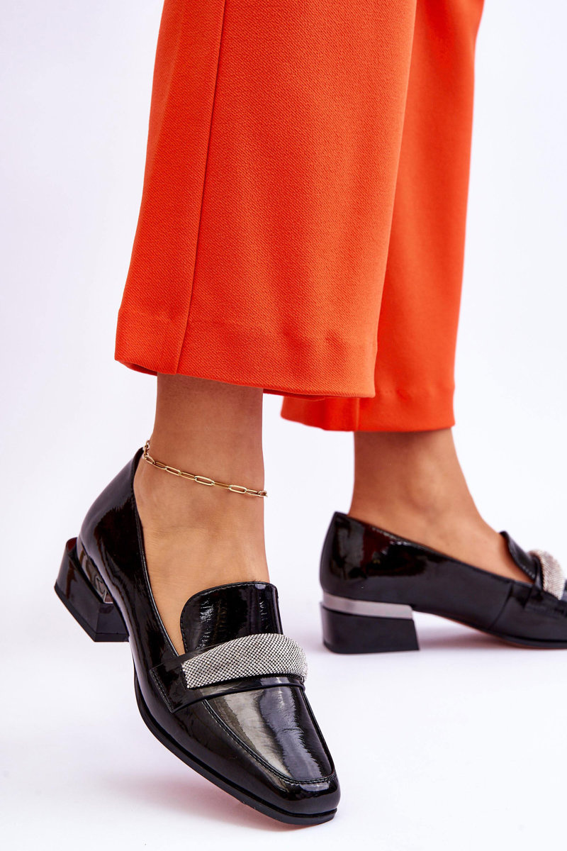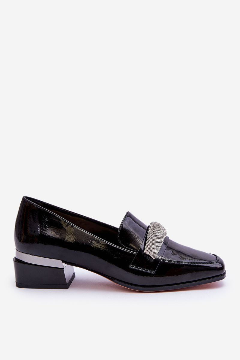 Mokasyny Lakier Obcas Cyrkonie Czarne Lavern