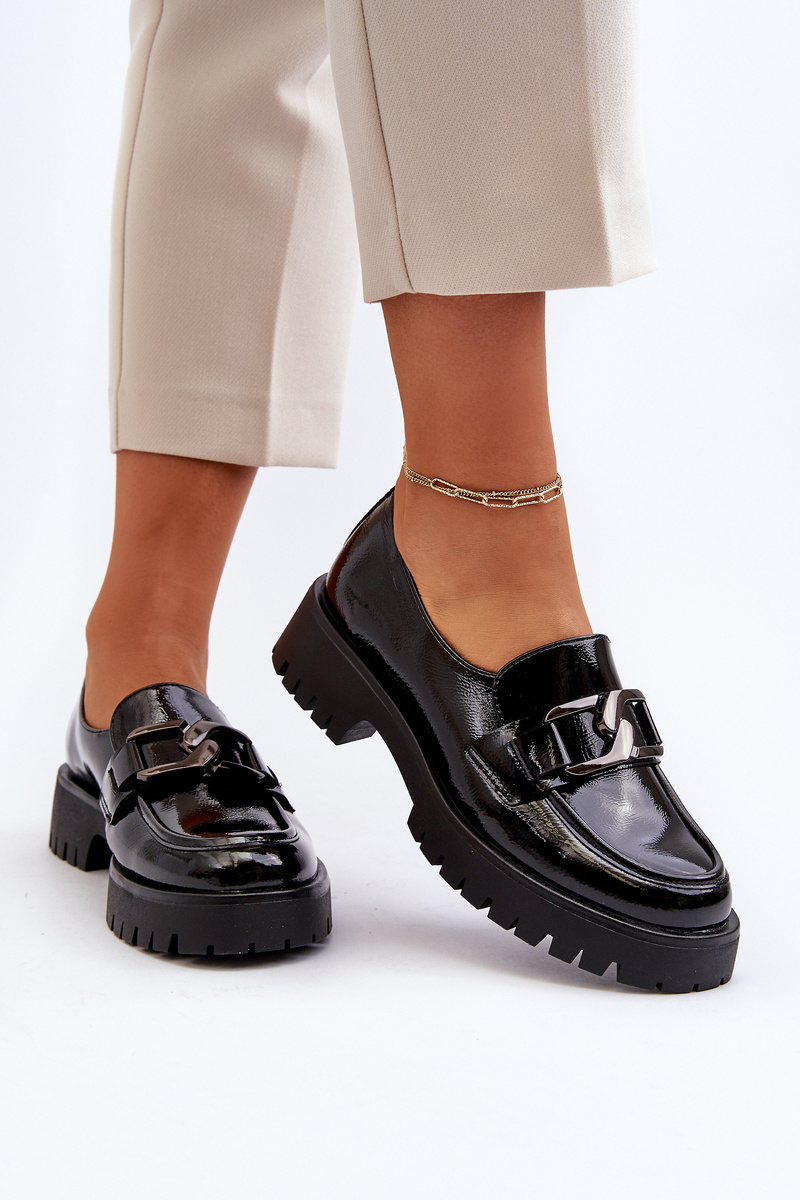 Mokasyny Lakierowane Damskie Czarne Santtes 58289