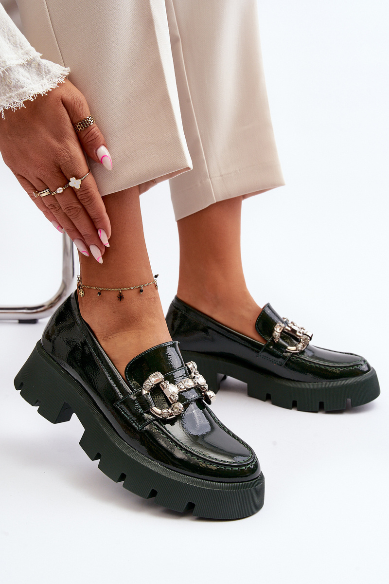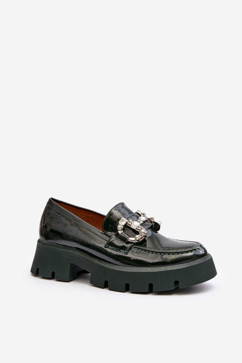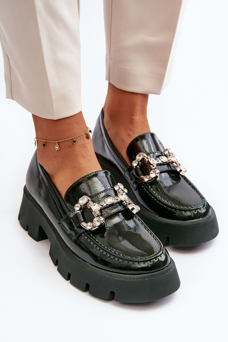 Mokasyny Lakierowane Damskie Ozdoba Ciemnozielone Arsaba G421