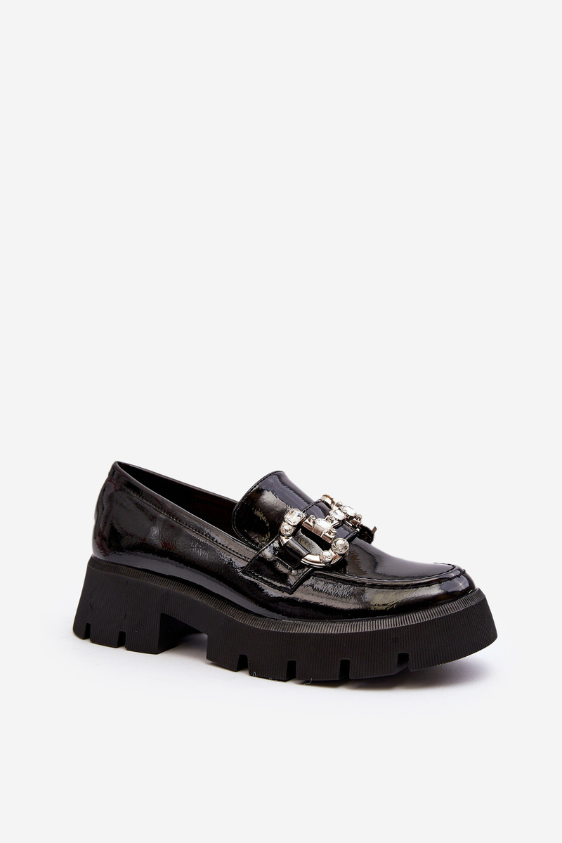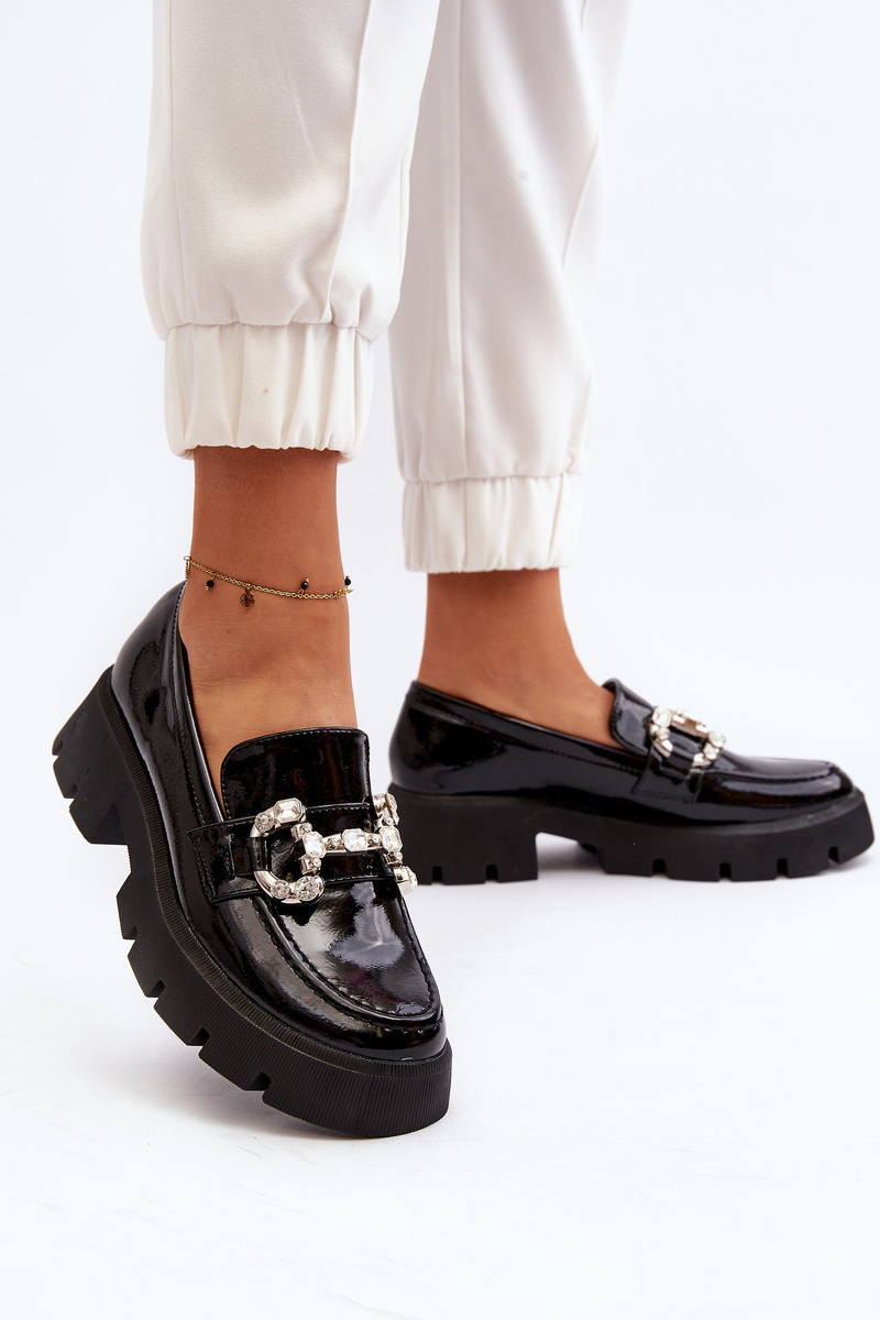 Mokasyny Lakierowane Damskie Ozdoba Czarne Arsaba G421