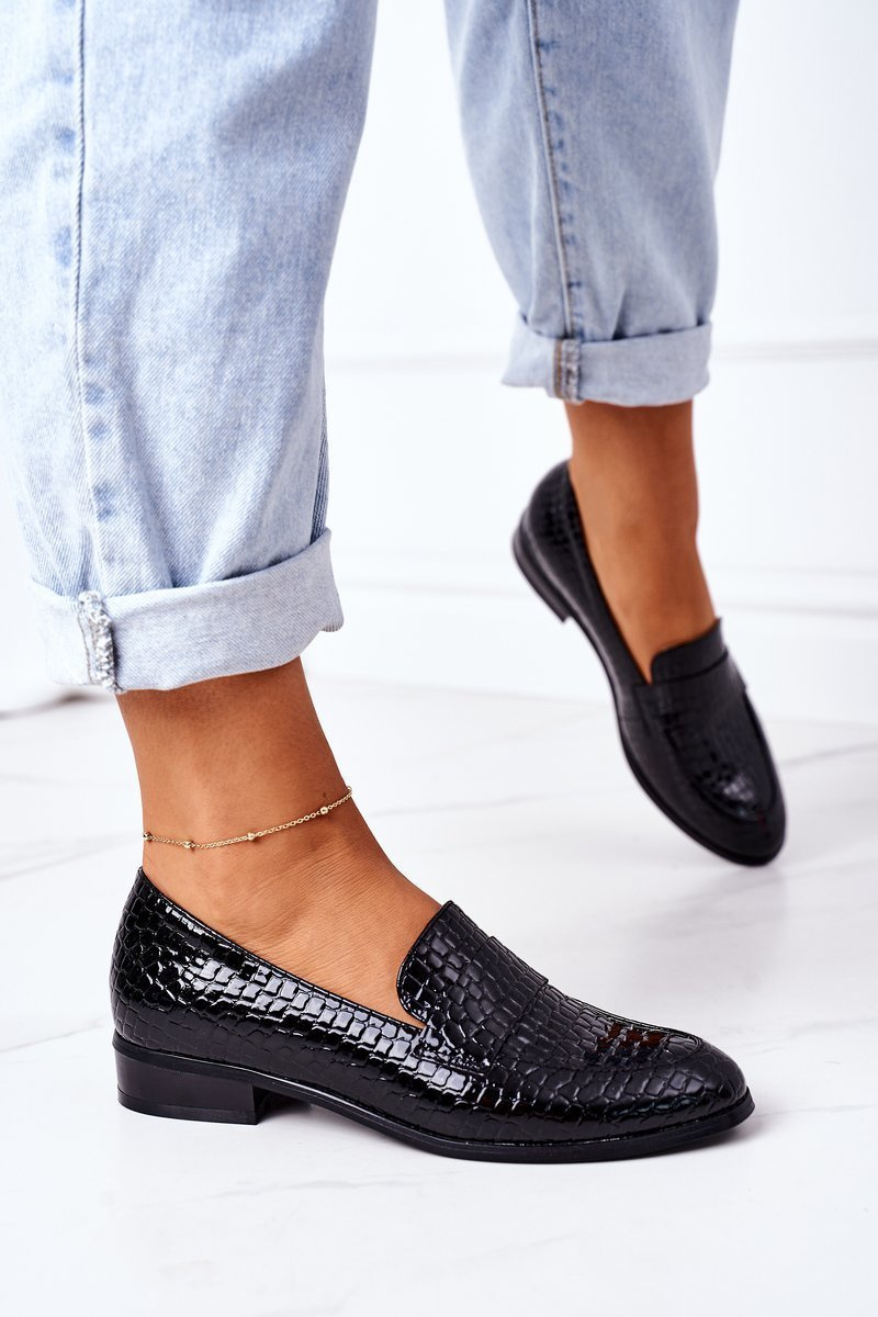 Mokasyny Lakierowane Zwierzęcy Wzór Czarne Lenie