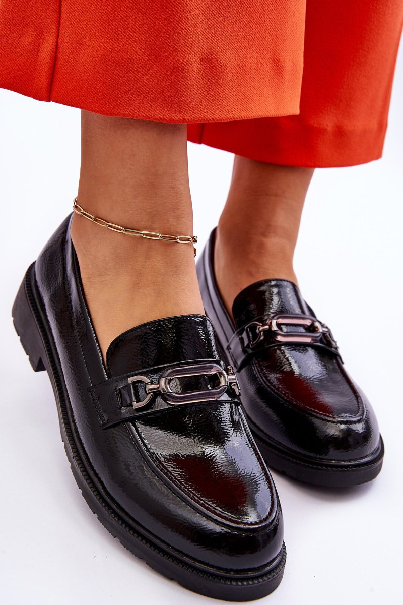 Mokasyny Loafersy Lakierowane Z Ozdobą Czarne Maura