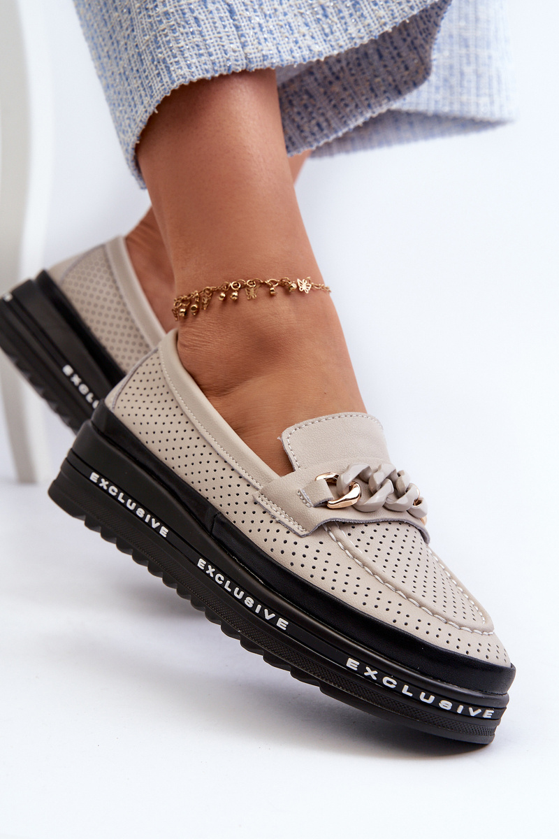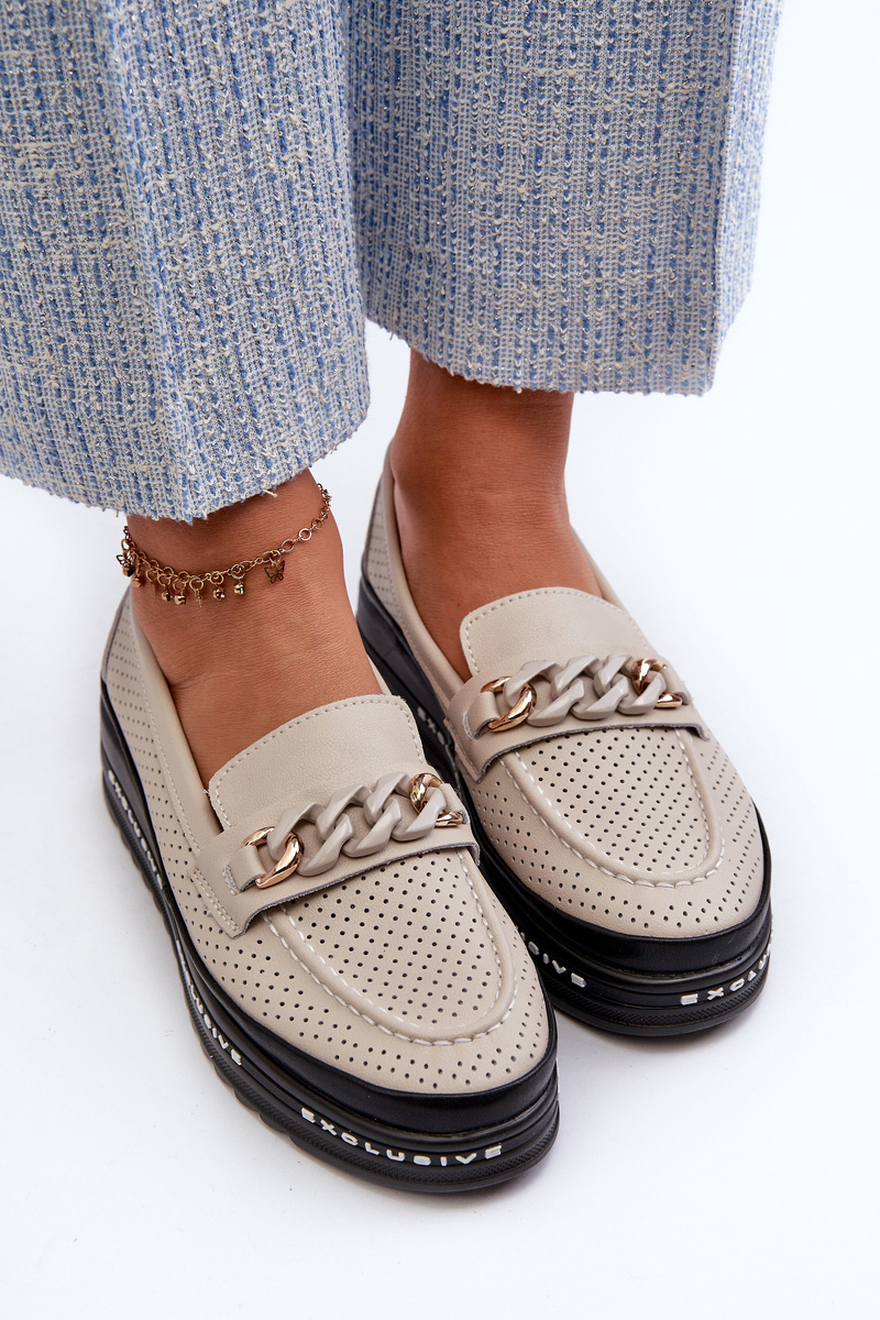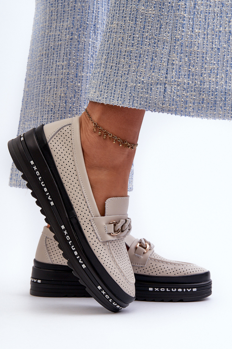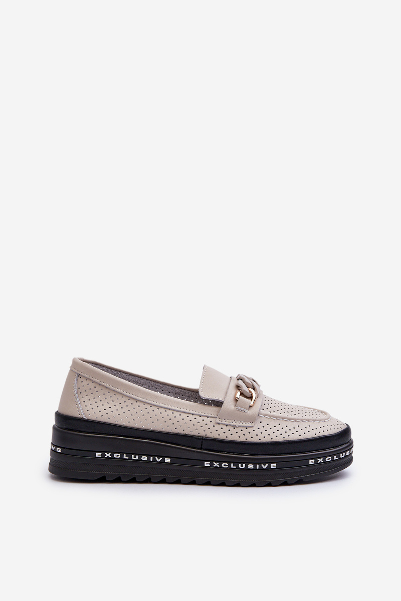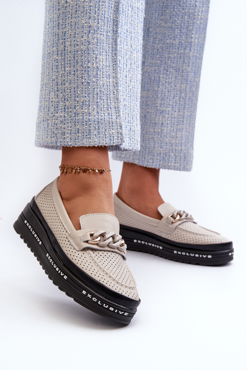 Mokasyny Na Platformie Z Łańcuchem Skórzane Beżowe S.Barski LR618
