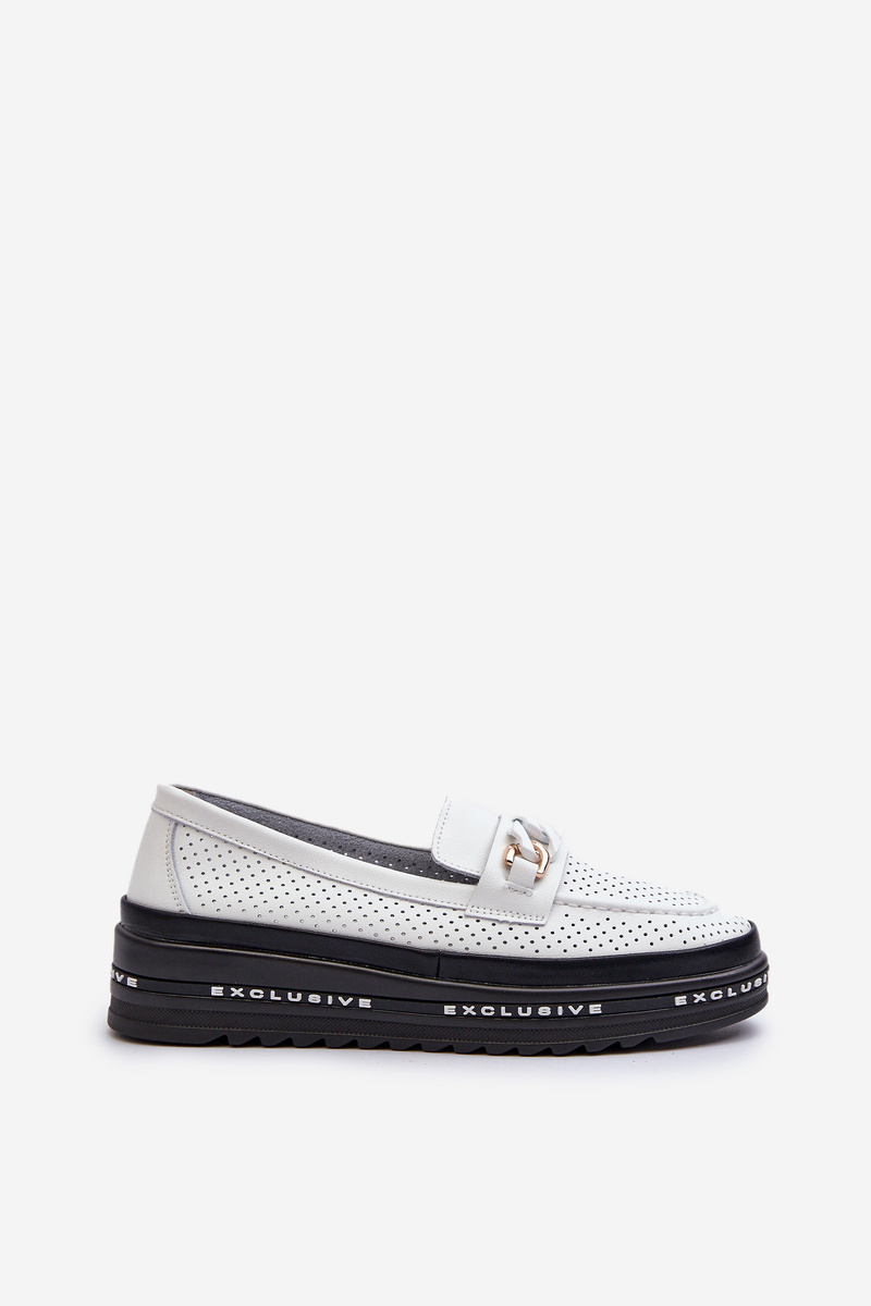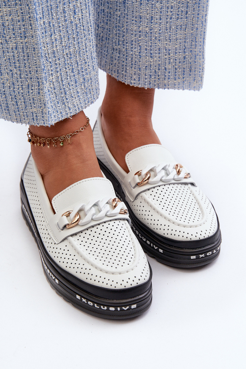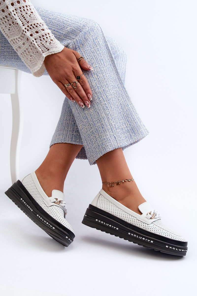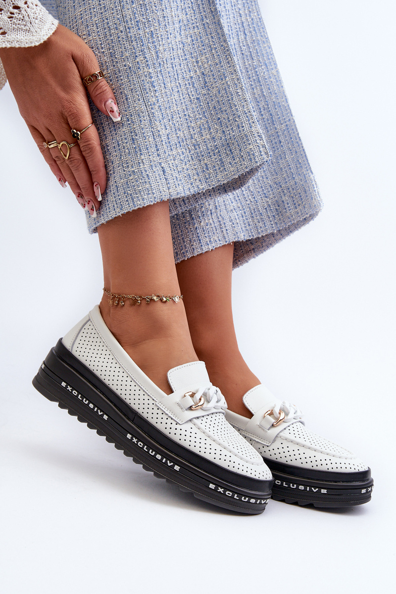 Mokasyny Na Platformie Z Łańcuchem Skórzane Białe S.Barski LR618