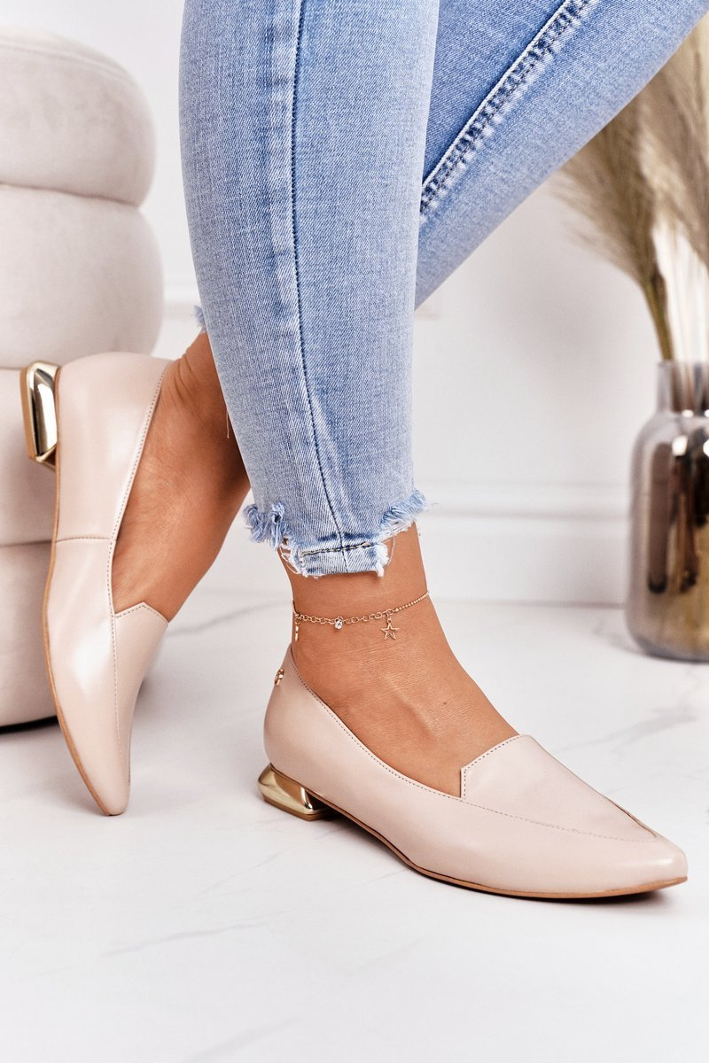 Mokasyny Na Złotym Obcasie Laura Messi 2013 Beżowe