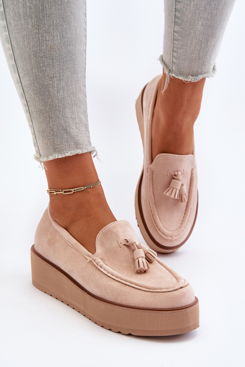 Mokasyny Platforma Frędzle Jasnobeżowe Mialani T599P