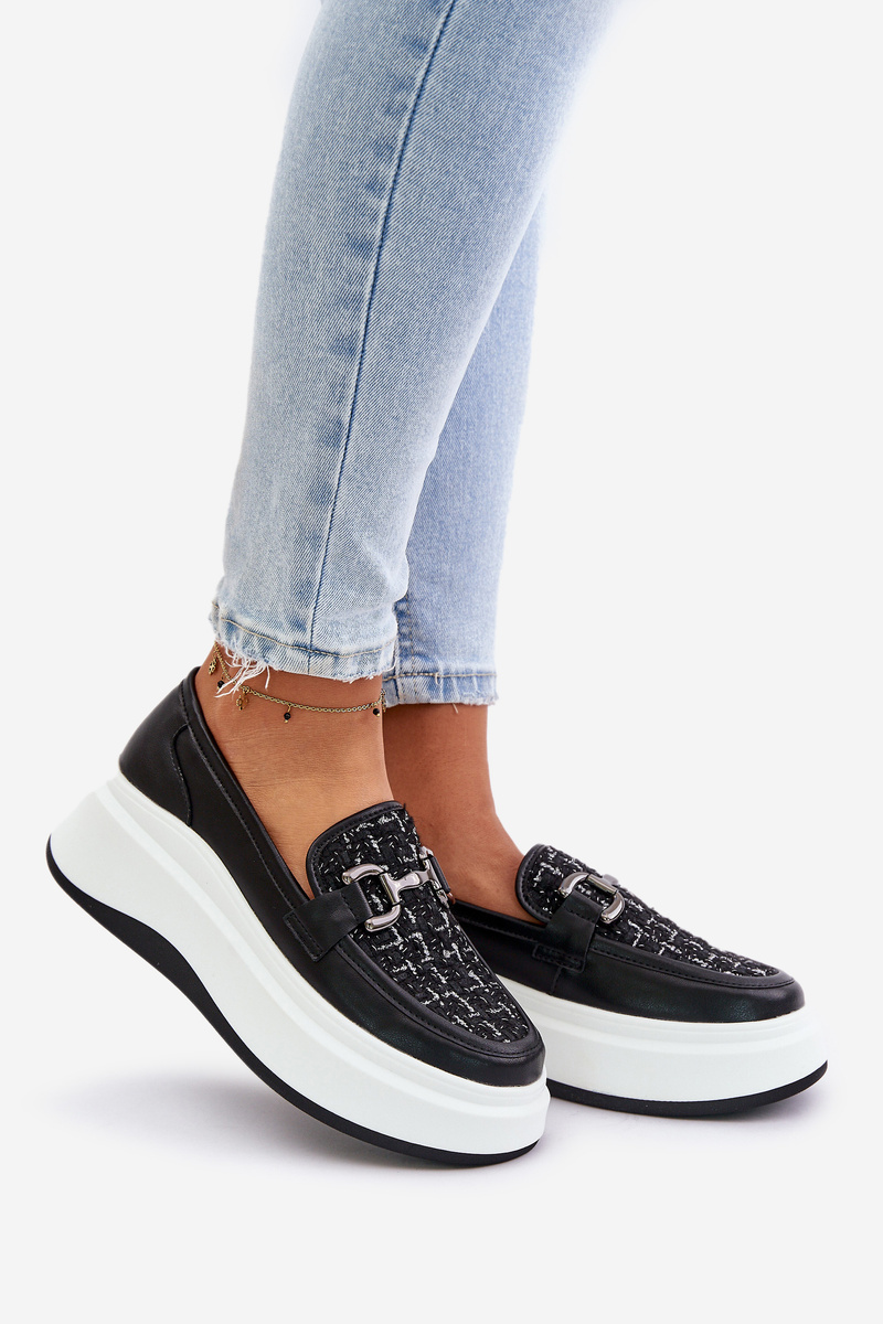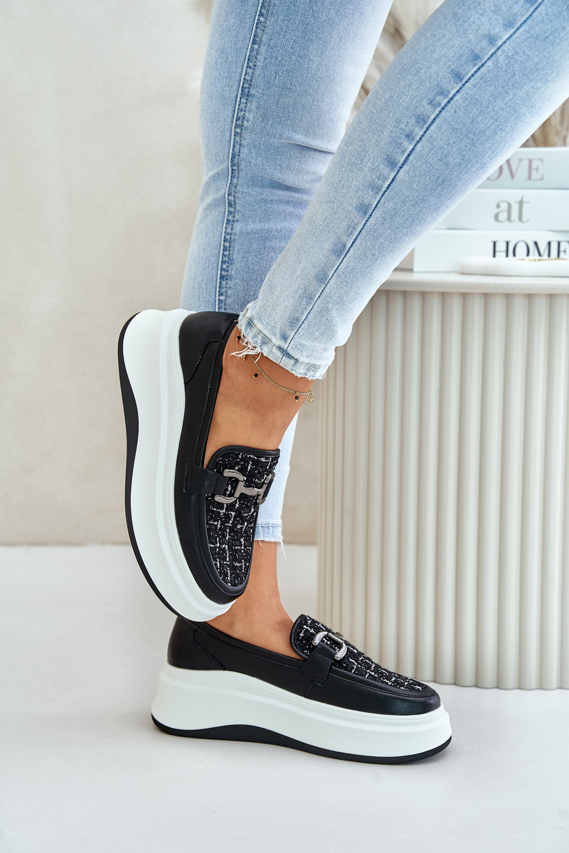 Mokasyny Skóra Naturalna Platforma Ozdoba Czarne 89105 Vinceza