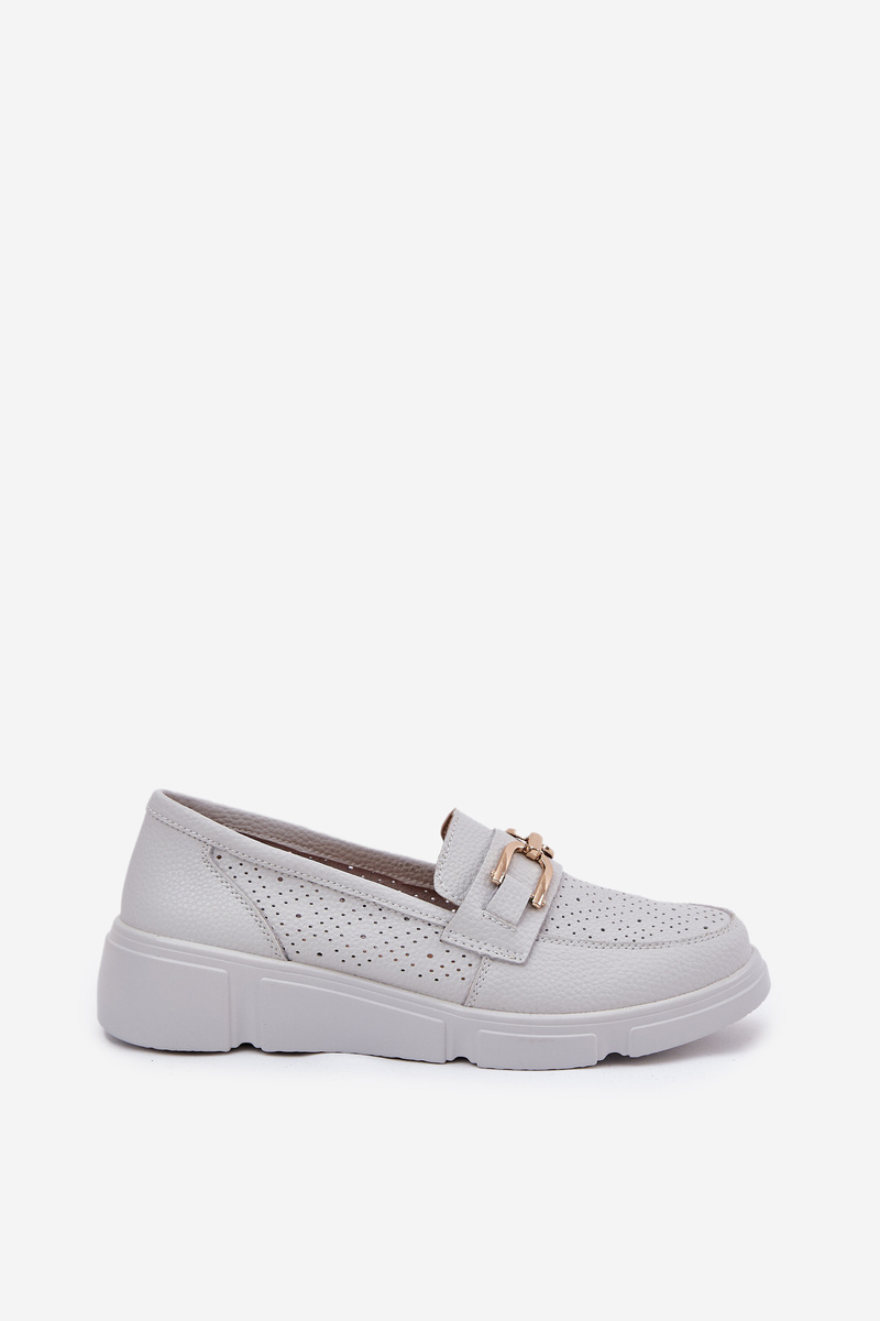 Mokasyny Skóra Naturalna Złota Ozdoba Jasnoszare Vinceza 88007