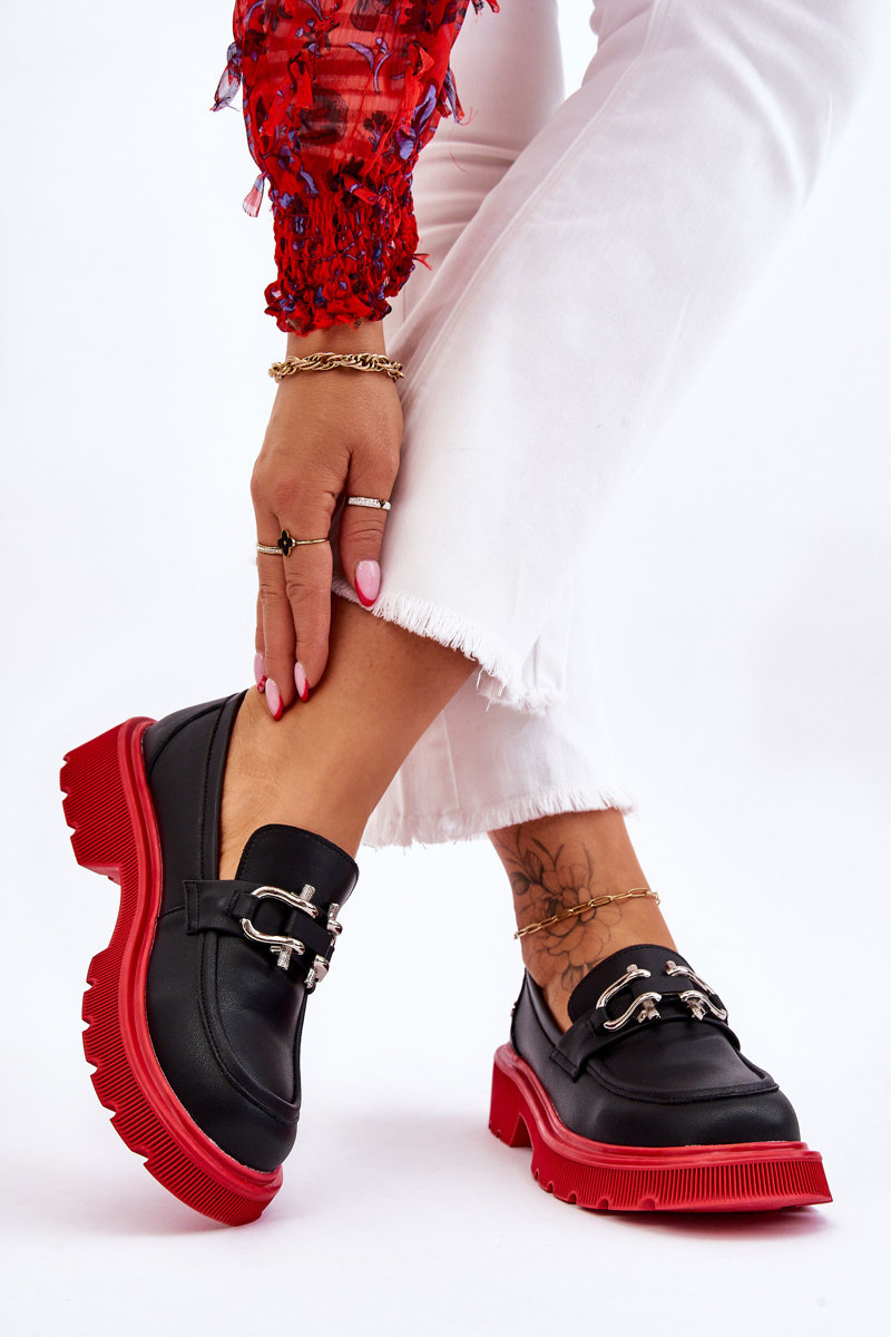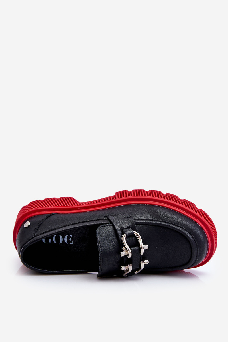 Mokasyny Skóra Ozdoba Czarno-Czerwone GOE LL2N4040