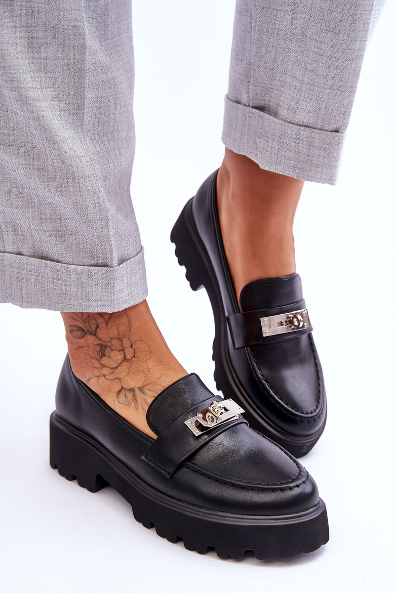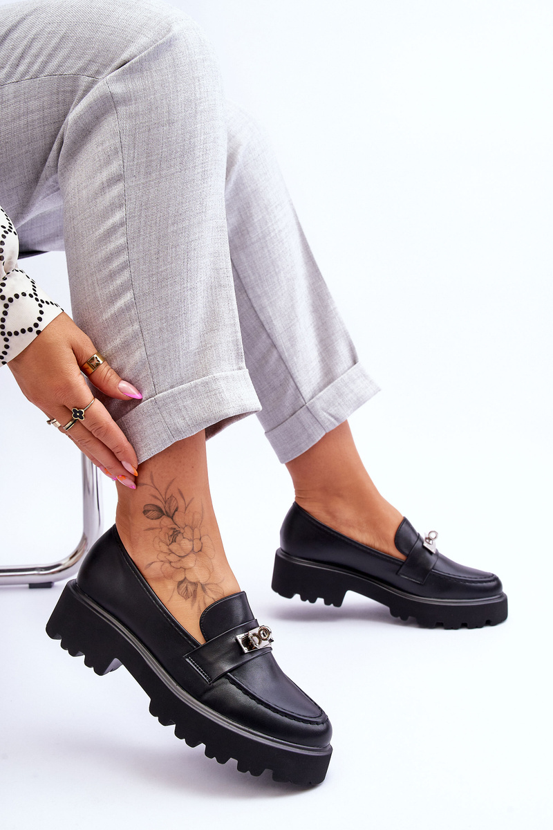 Mokasyny Skóra Ozdoba Platforma Czarne Glory