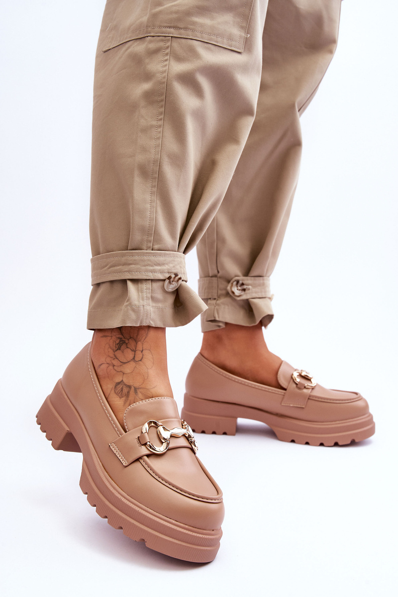 Mokasyny są idealne dla każdej kobiety ceniącej sobie wygodę w użytkowaniu. Ich uniwersalność sprawia, że można łatwo dopasować je do wielu stylizacji. Buty mokasyny są jednym z najczęściej wybieranych modeli w sezonie wiosenno-jesiennym. Damskie mokasyny zostały wykonane z ekologicznej skóry. Posiadają ozdobę z tworzywa sztucznego na przodzie. Zostały osadzone na platformie i płaskim obcasie. Dodatkowo zapiętek w tych butach jest delikatnie usztywniany.
