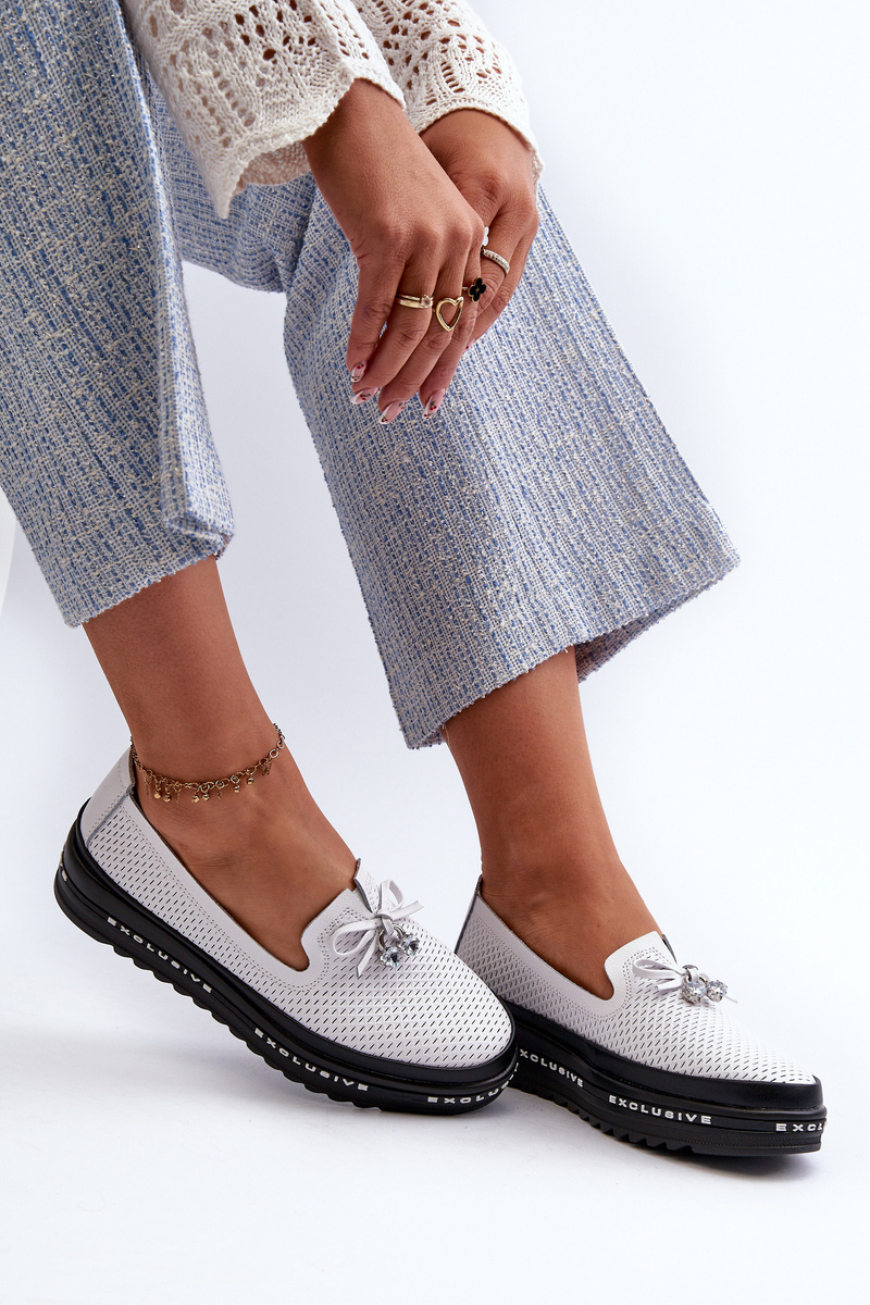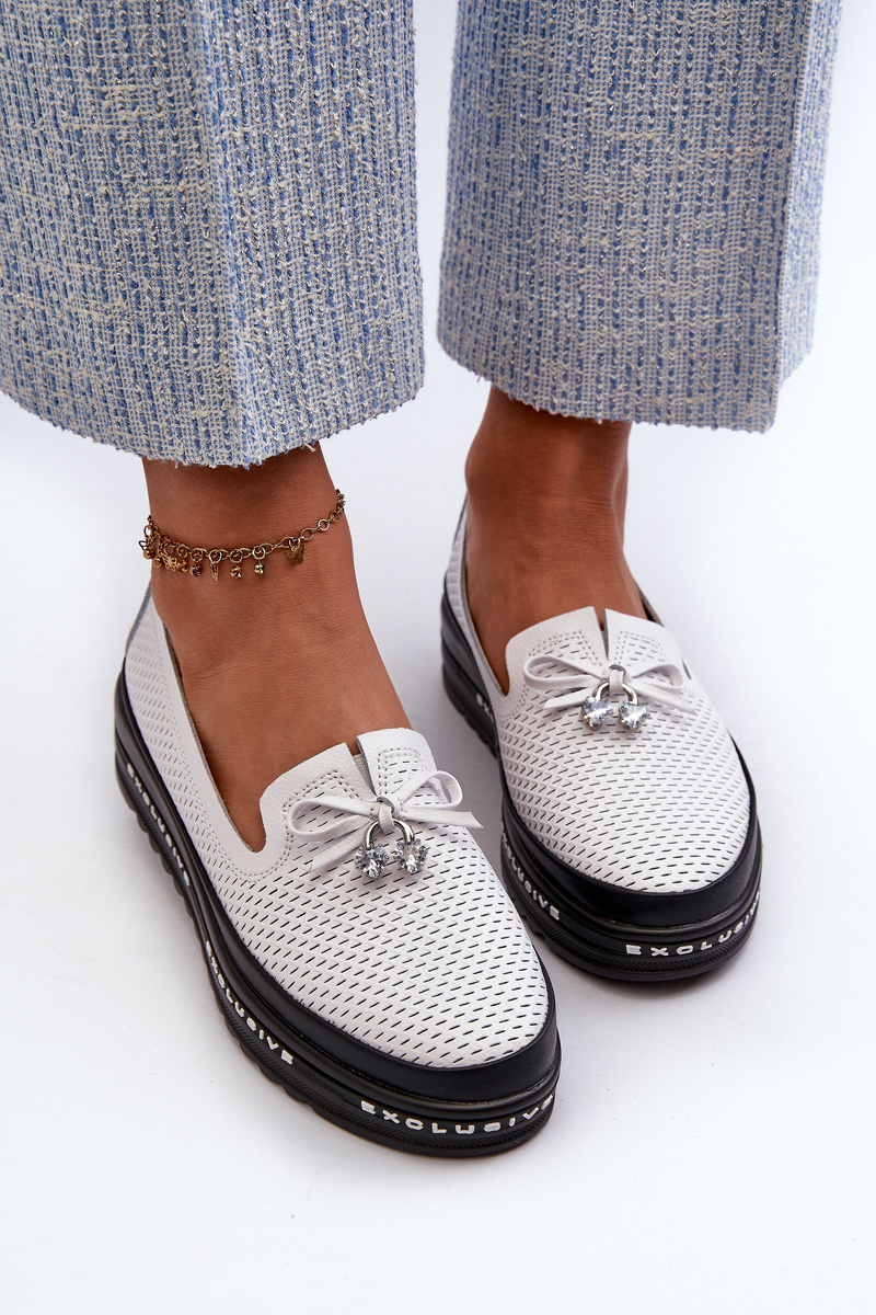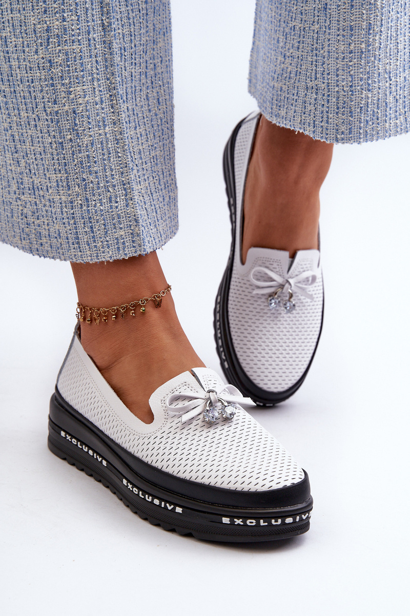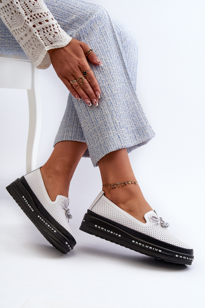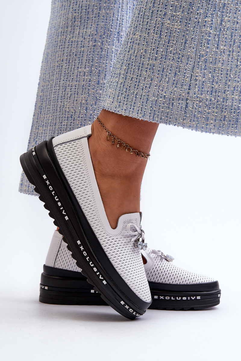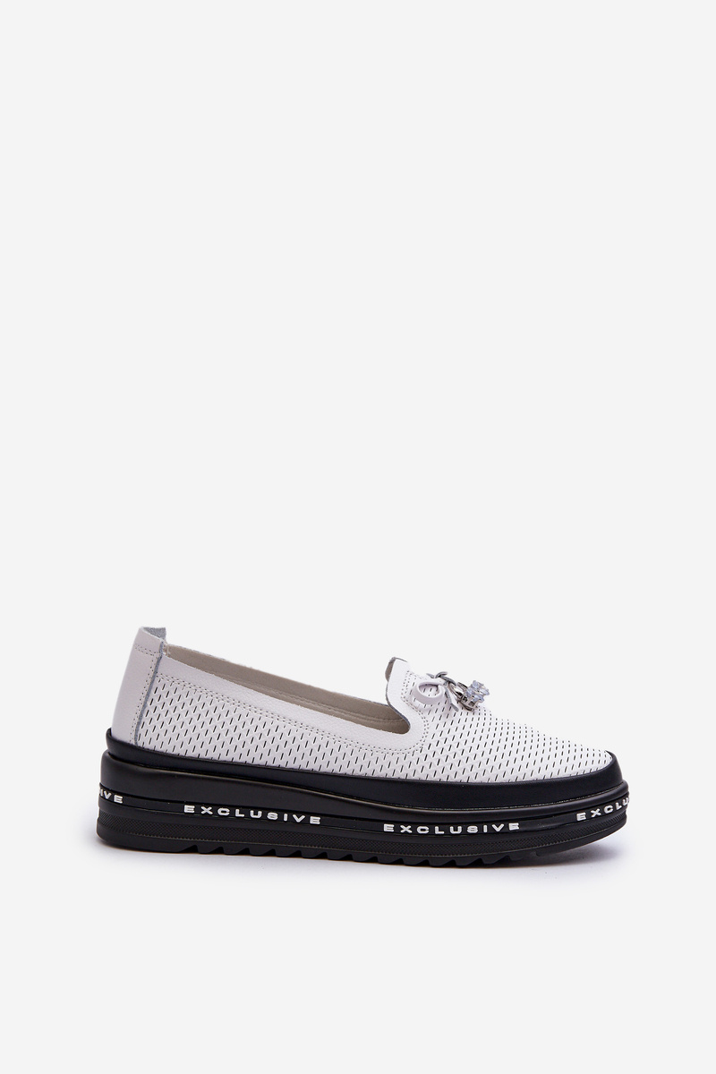 Mokasyny Skórzane Na Platformie Białe S.Barski LR400
