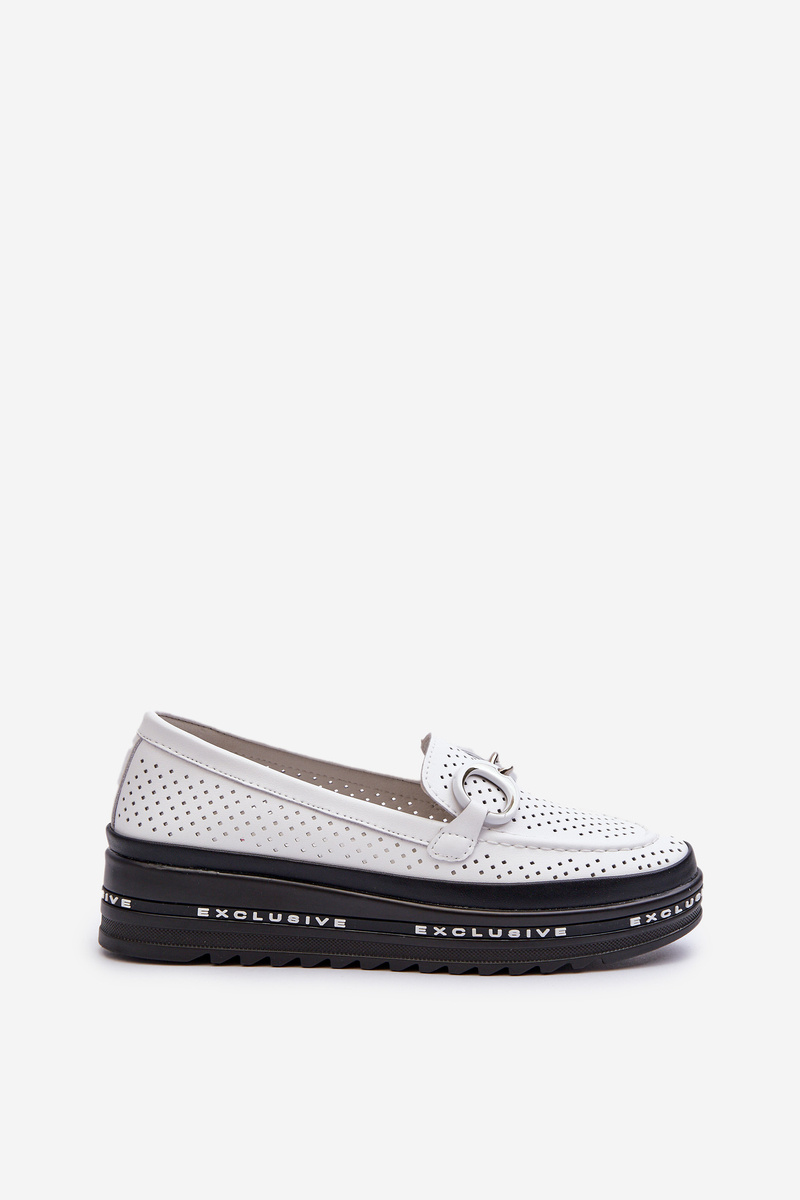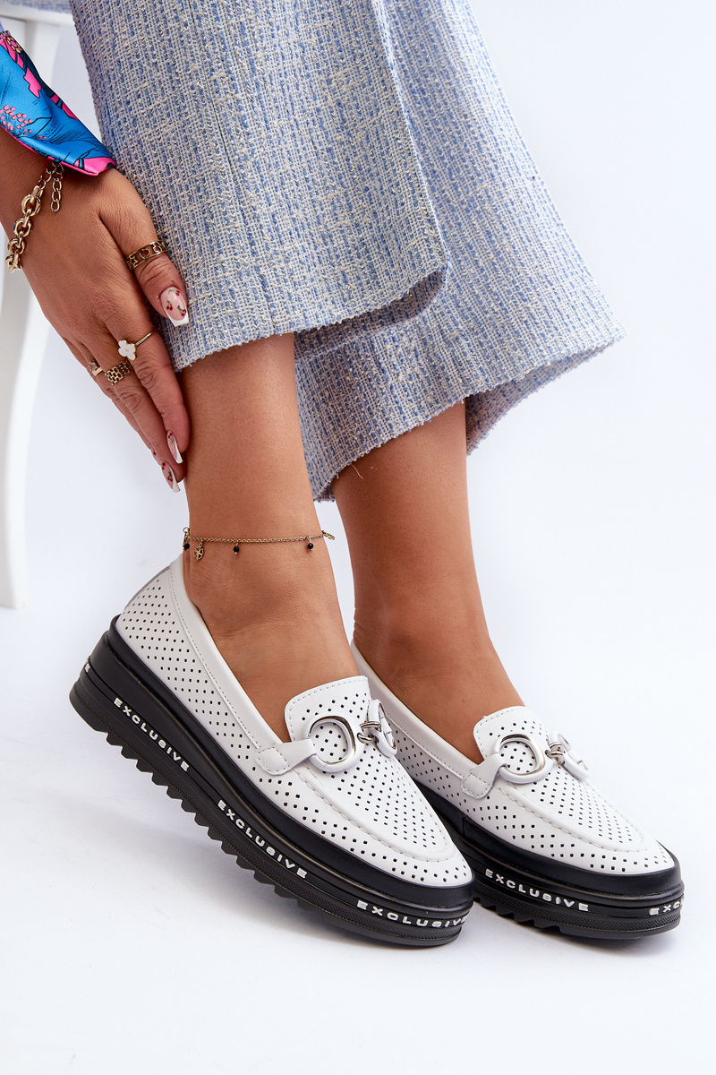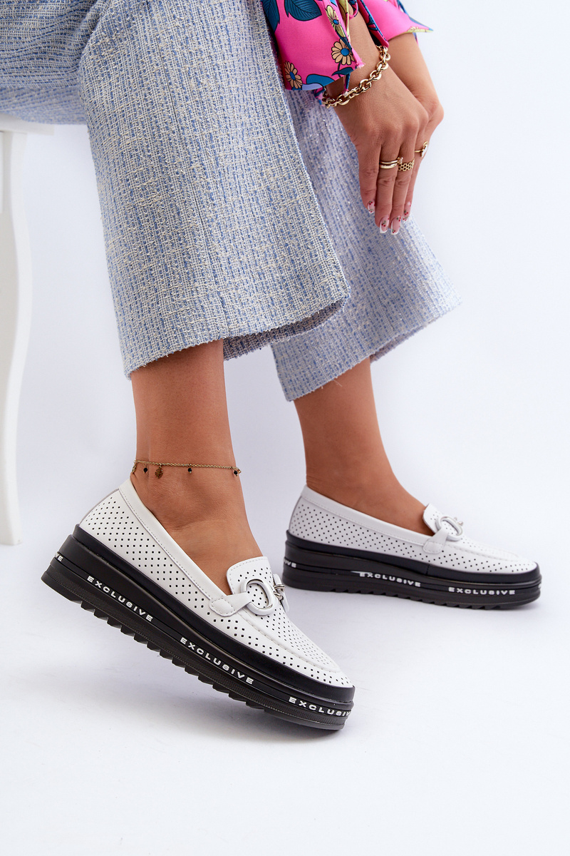 Mokasyny Skórzane Na Platformie Z Ozdobą Białe S.Barski LR750