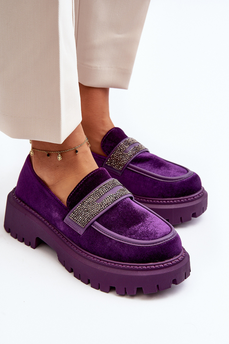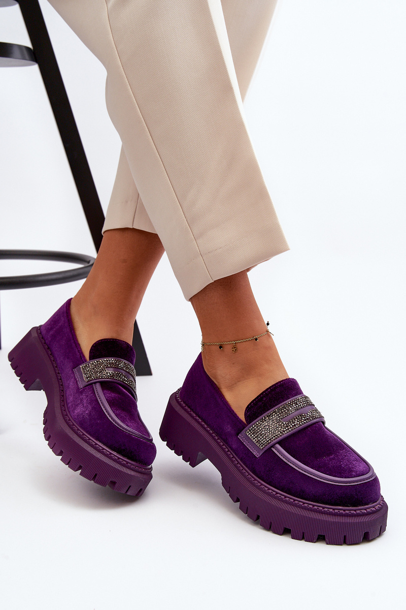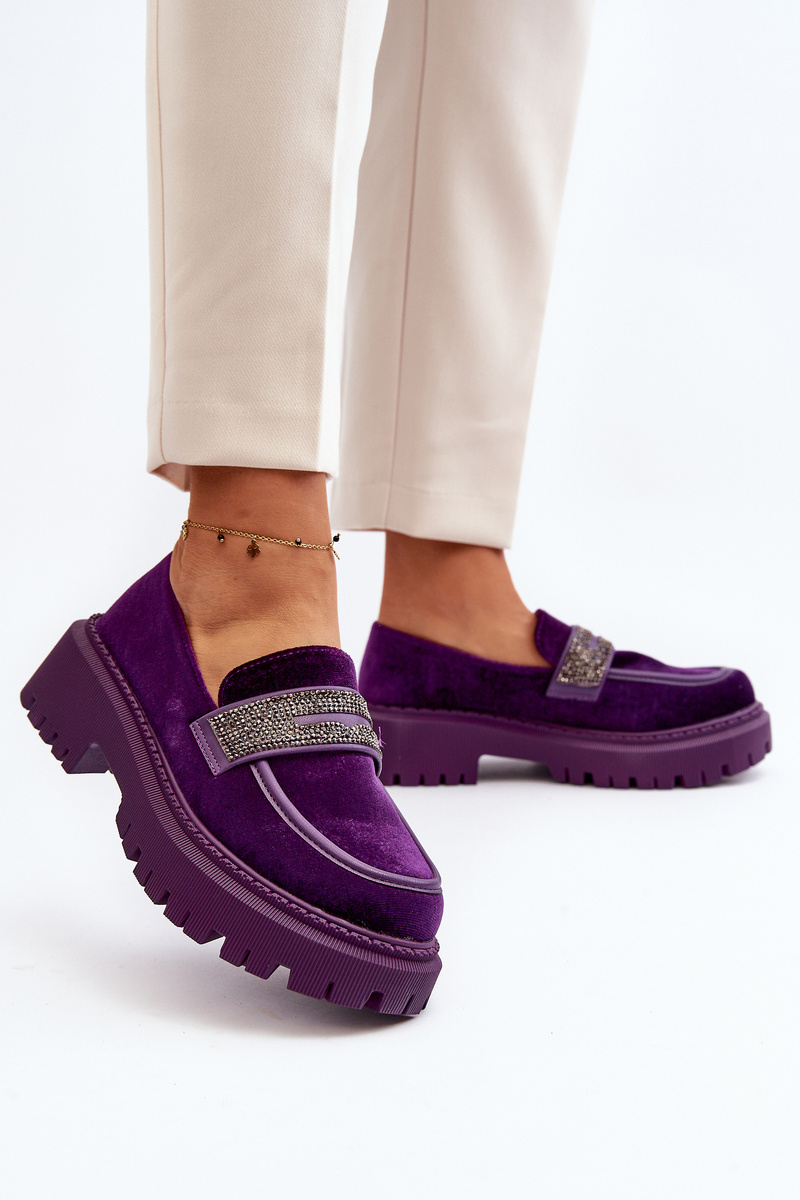 Mokasyny Welurowe Damskie Ozdoba Fioletowe Wendreda H8-316