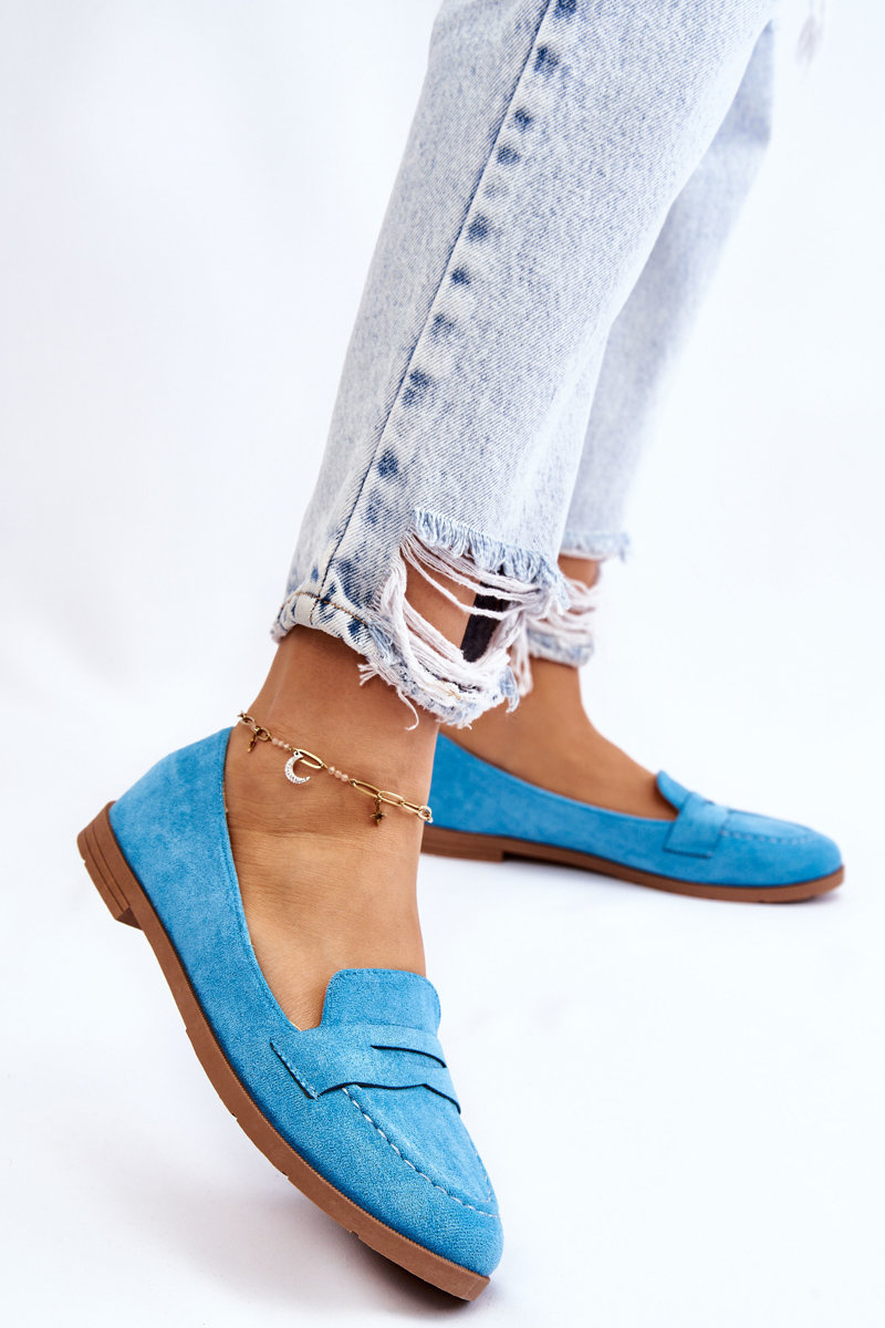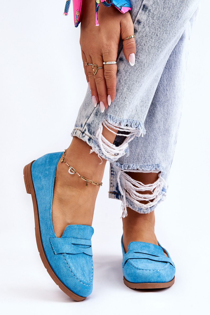 Mokasyny Wygodne Zamsz Damskie Niebieskie Lucca