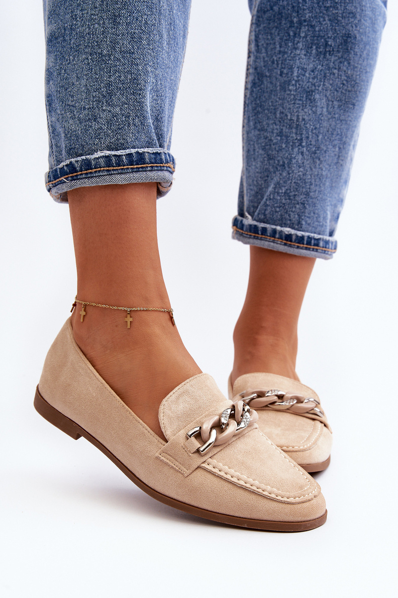Mokasyny Z Łańcuchem Damskie Beżowe Ambrise 4596