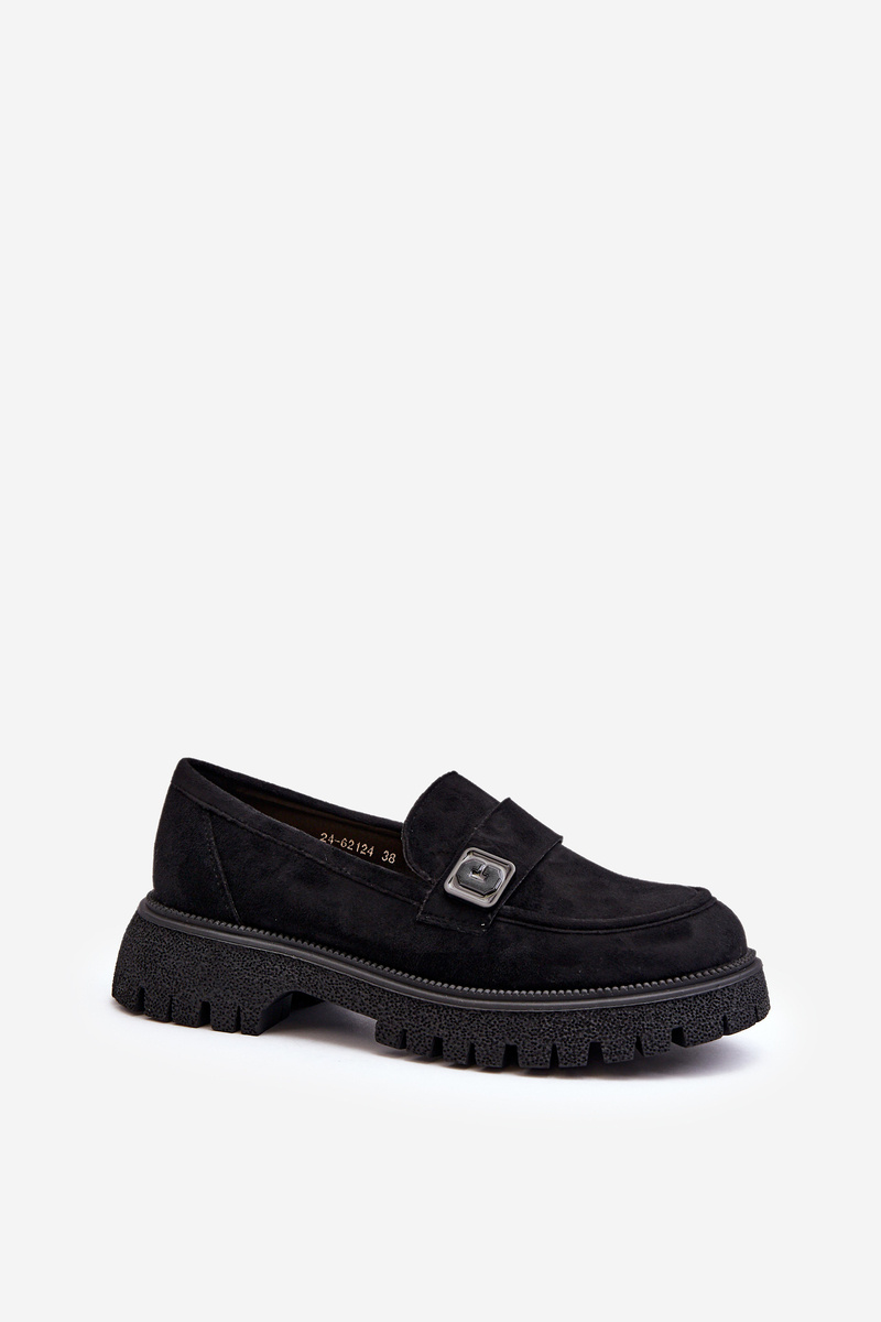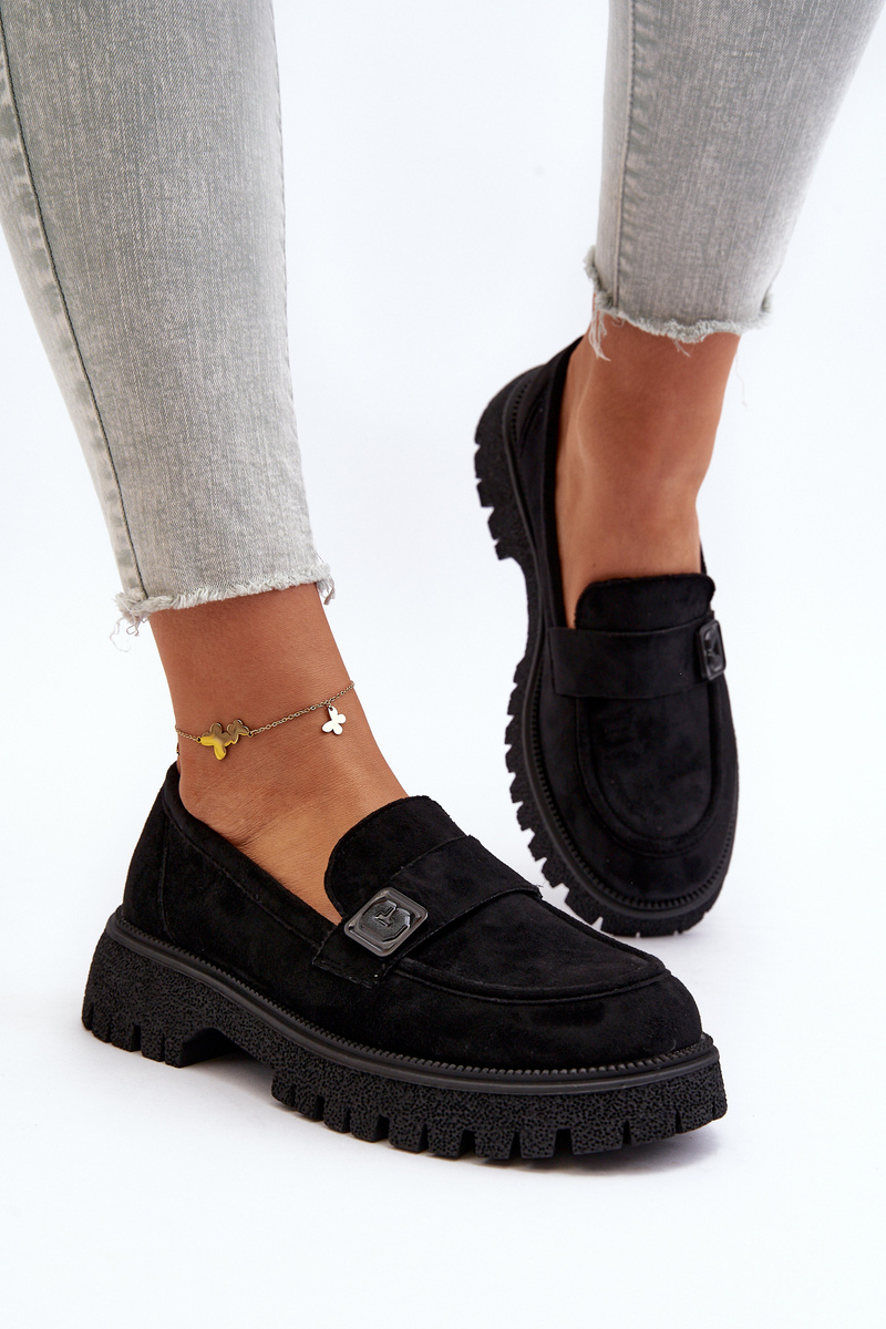 Mokasyny Z Paskiem Damskie Czarne Flanila 62124