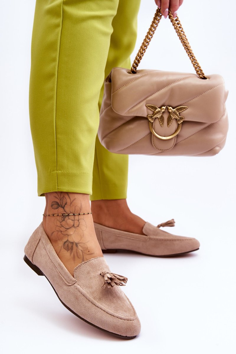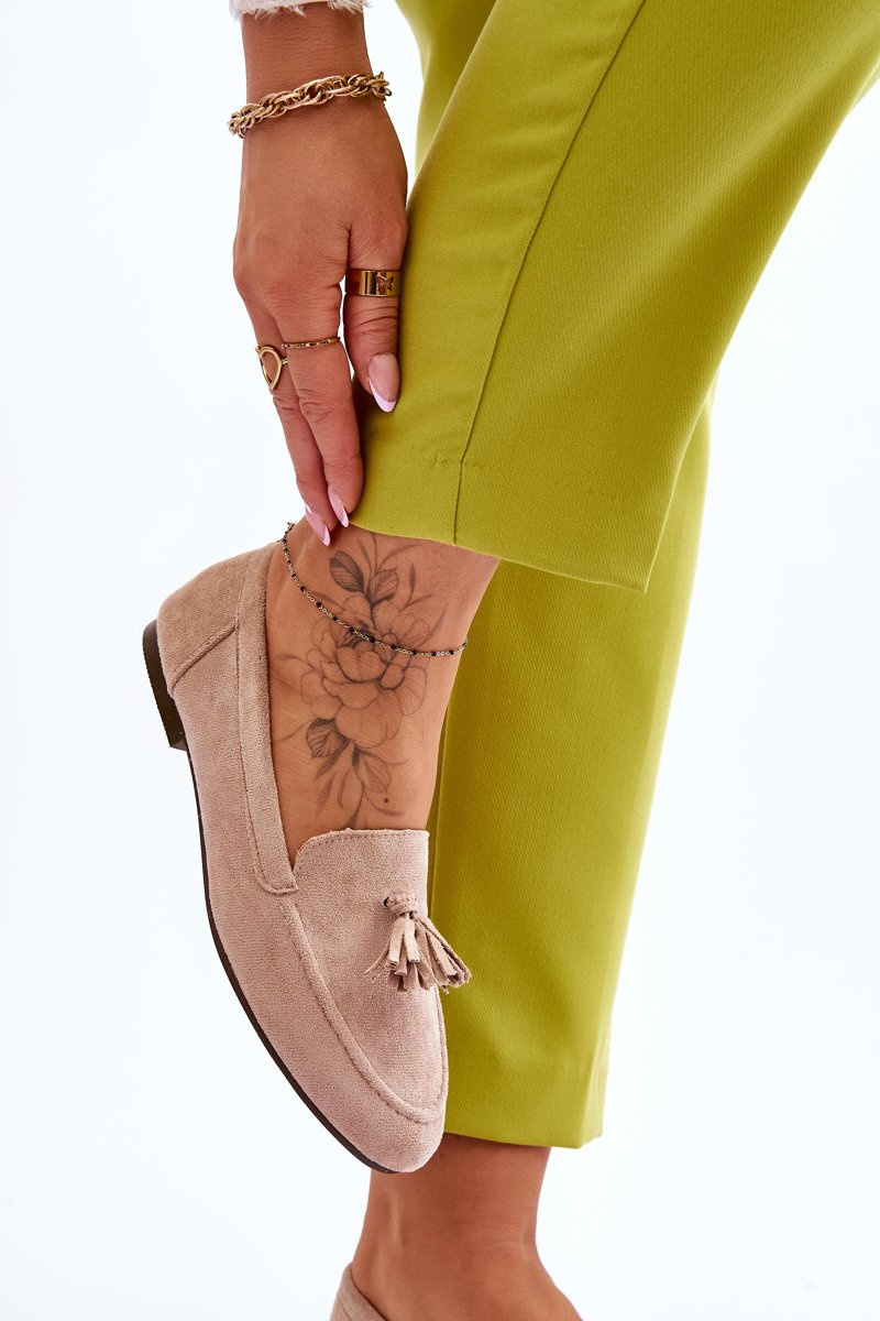 Mokasyny Zamsz Klasyczne Frędzle Beżowe Averil