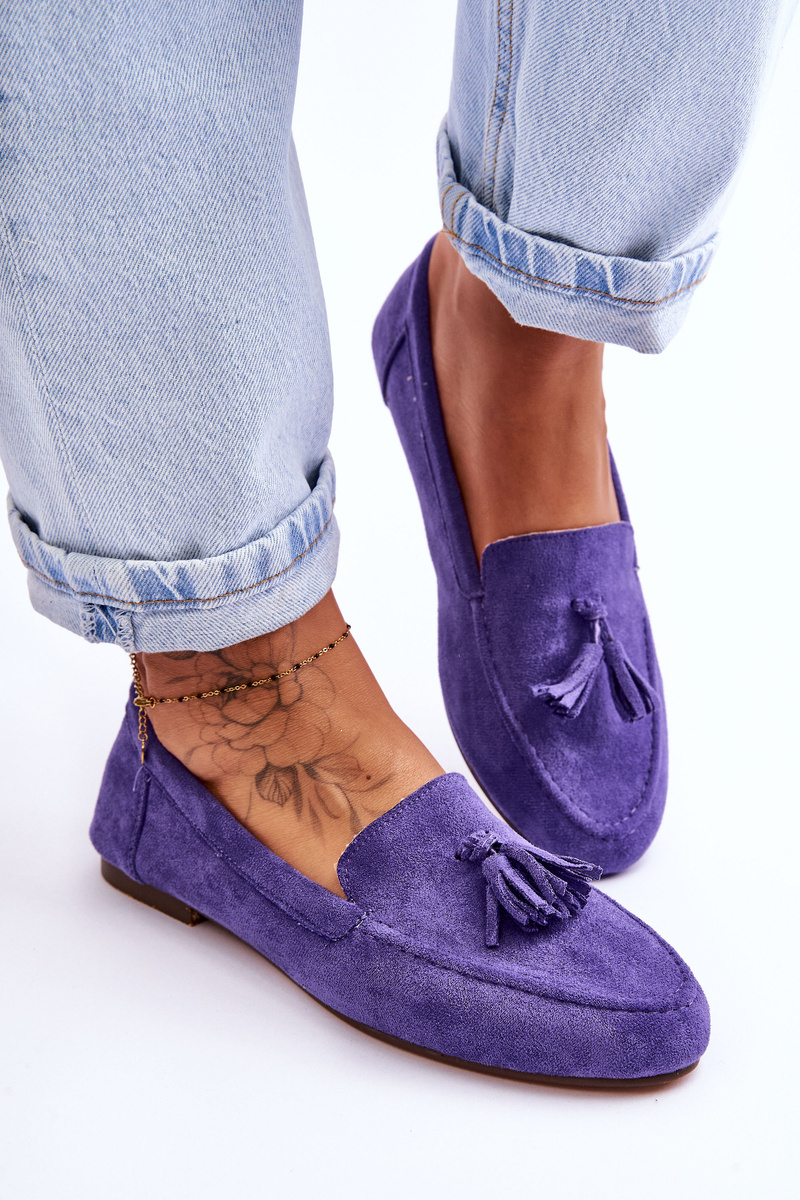 Mokasyny Zamsz Klasyczne Frędzle Fioletowe Averil