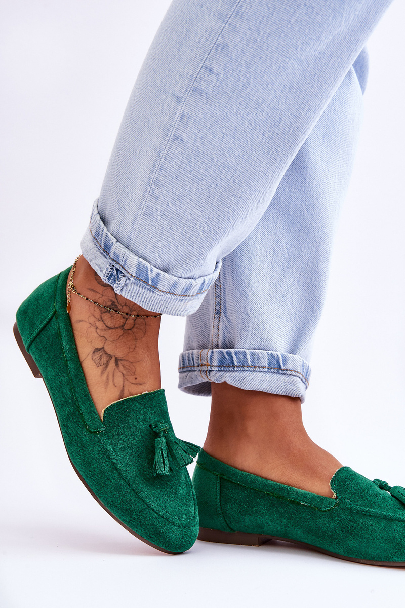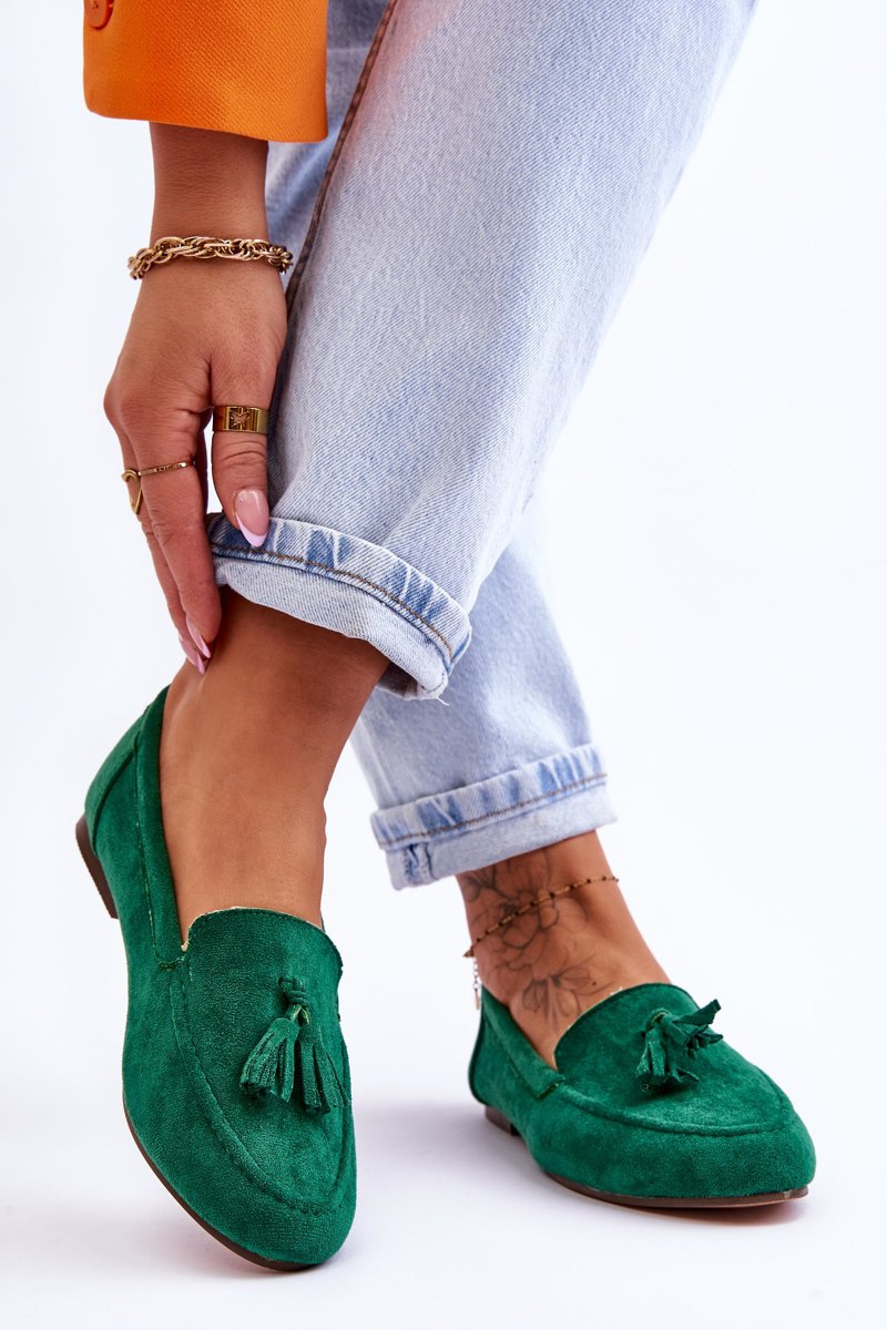 Mokasyny Zamsz Klasyczne Frędzle Zielone Averil