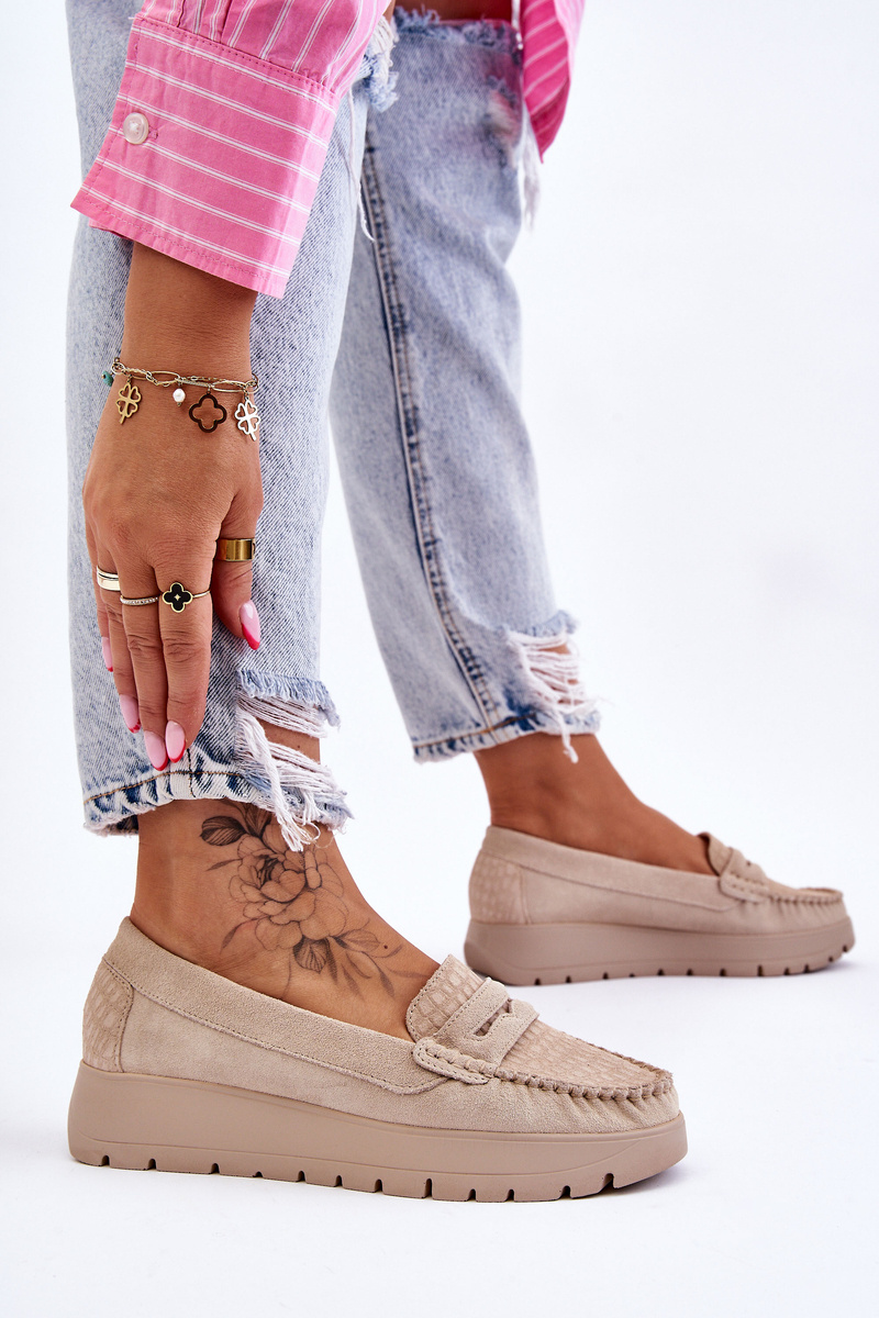 Mokasyny Zamsz Platforma Jasnobeżowe Lemar Milana