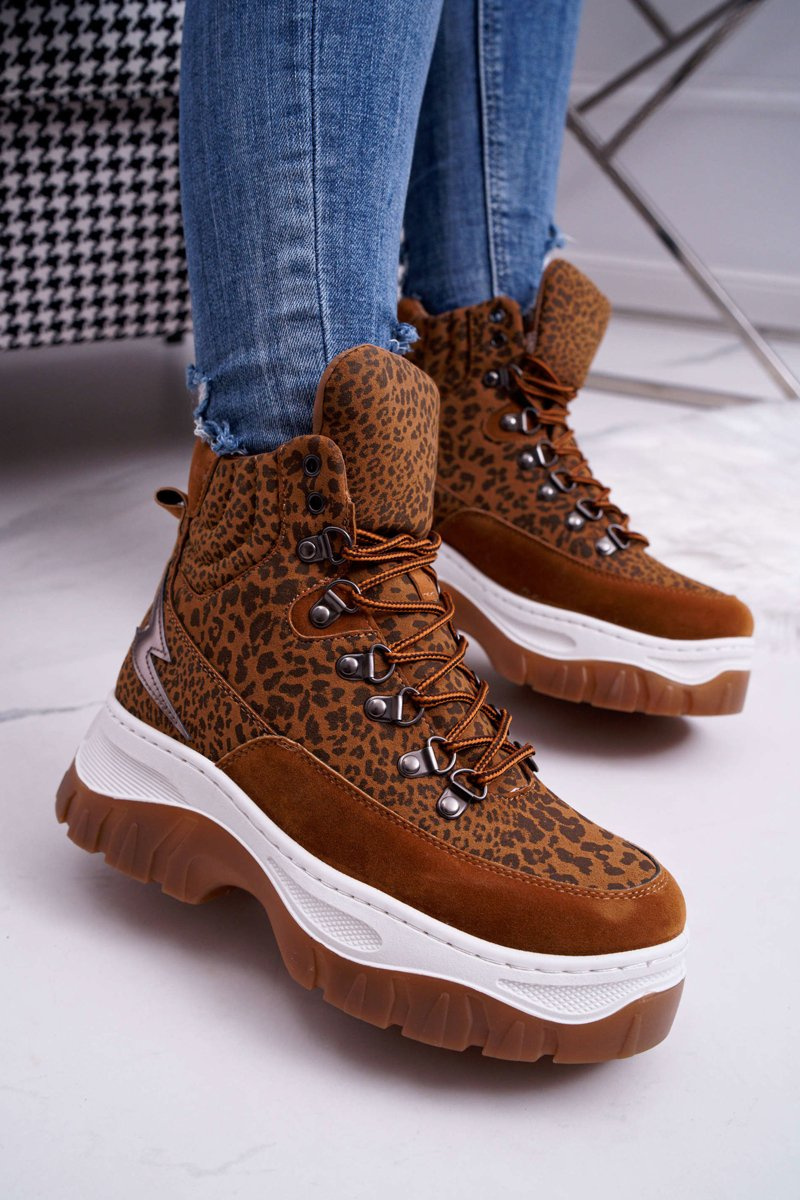 Obuwie Trekkingowe Trapery Damskie Leopard Greem