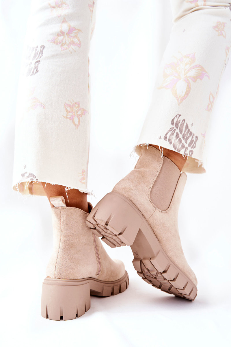 Ocieplane Botki Na Obcasie Beżowe Madge