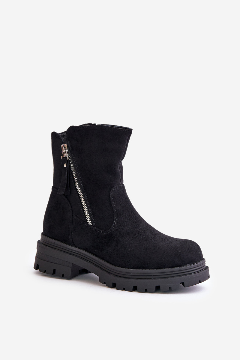 Ocieplane Botki Płaski Obcas Zamki Eko Zamsz Czarne Reloma