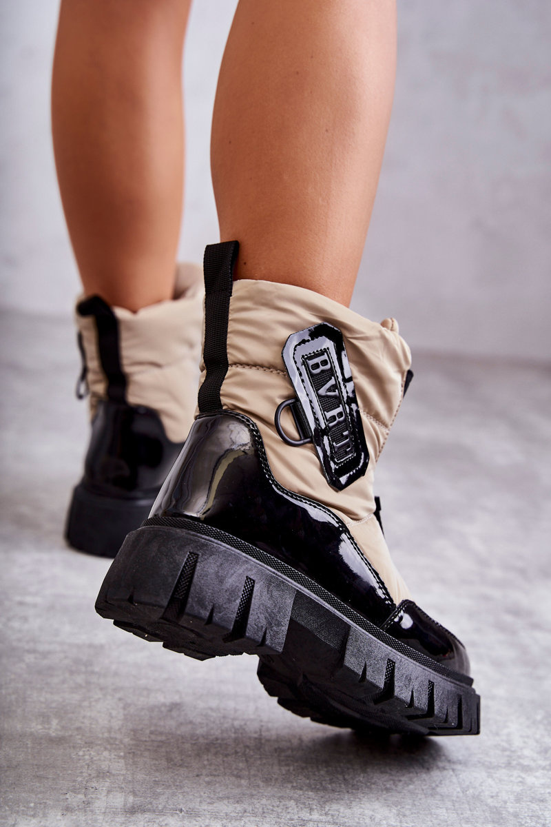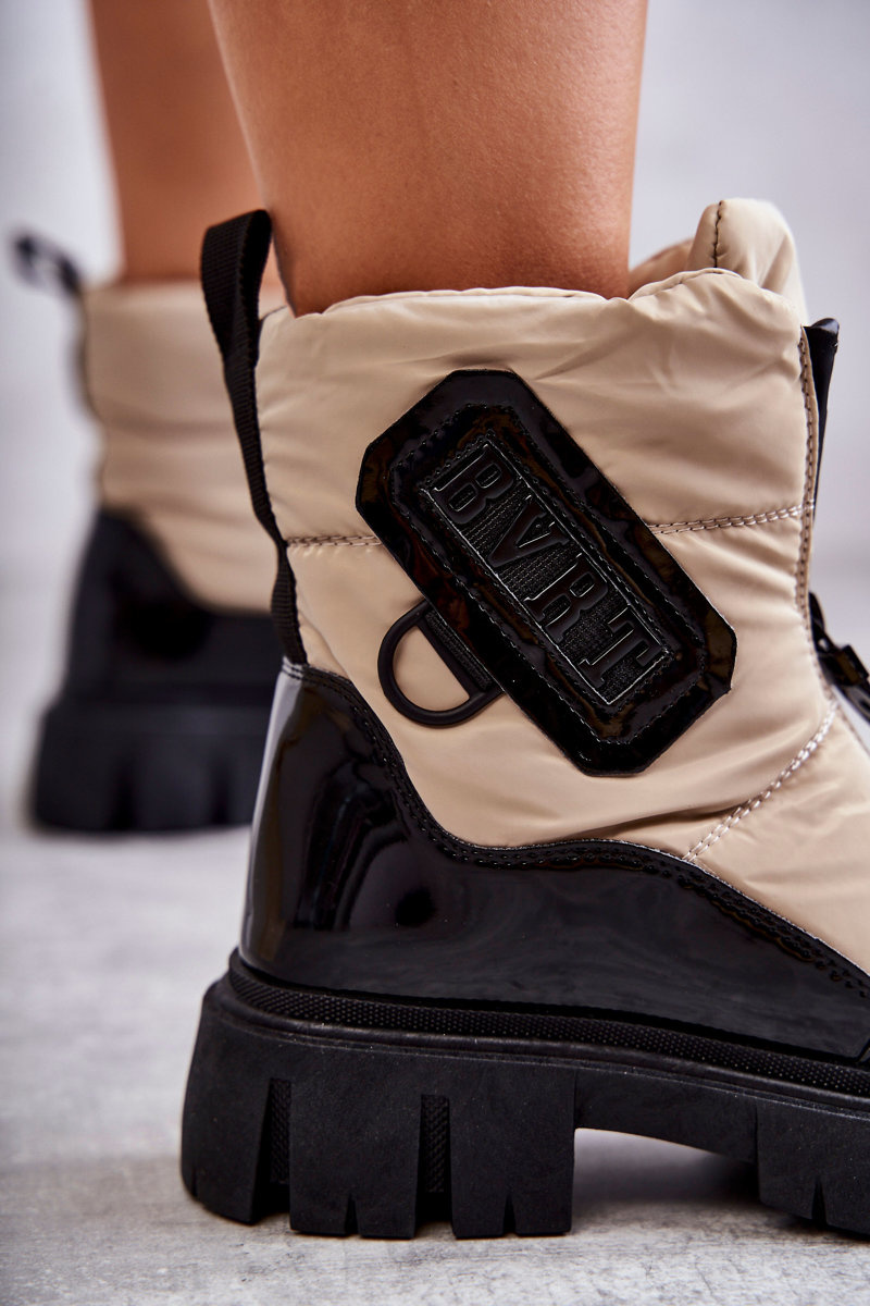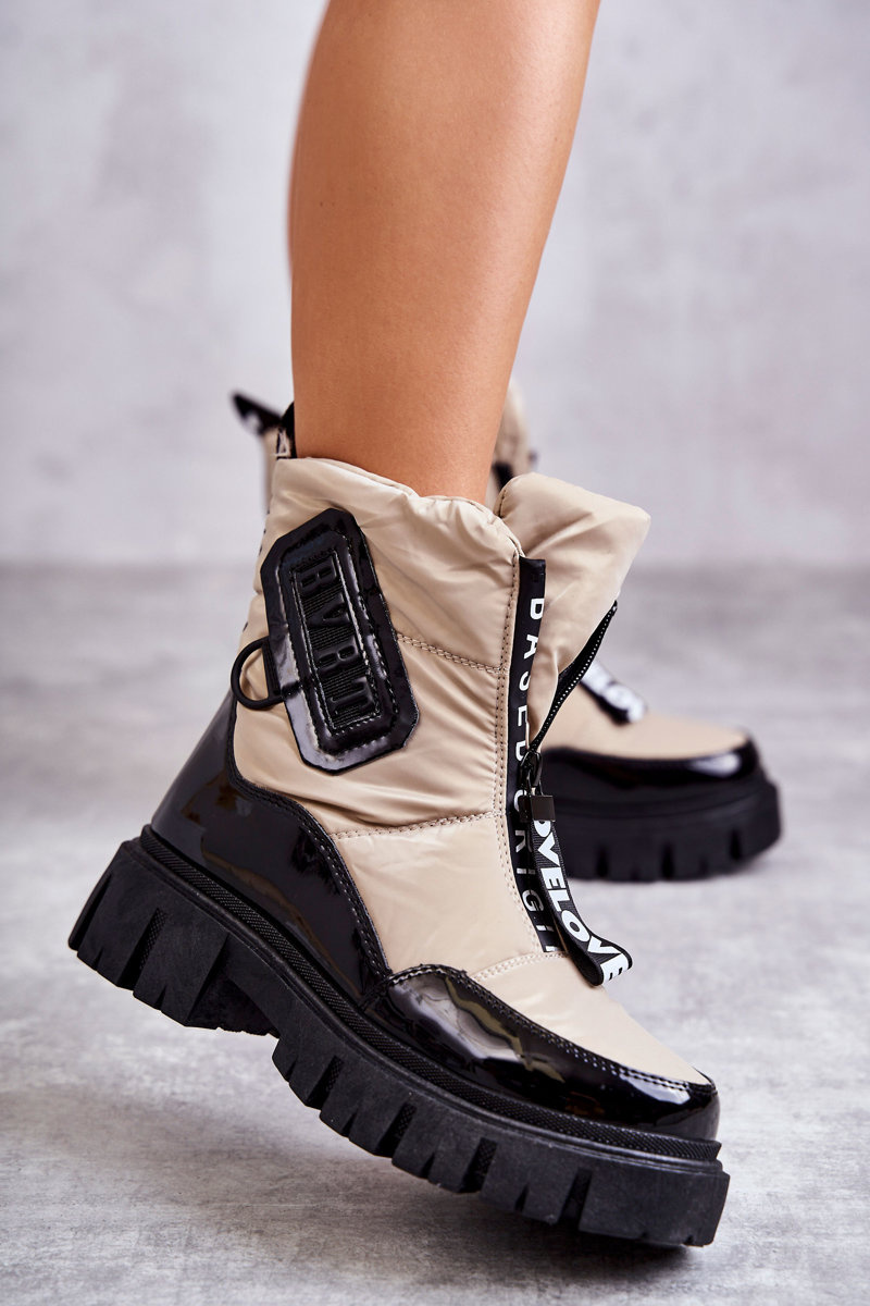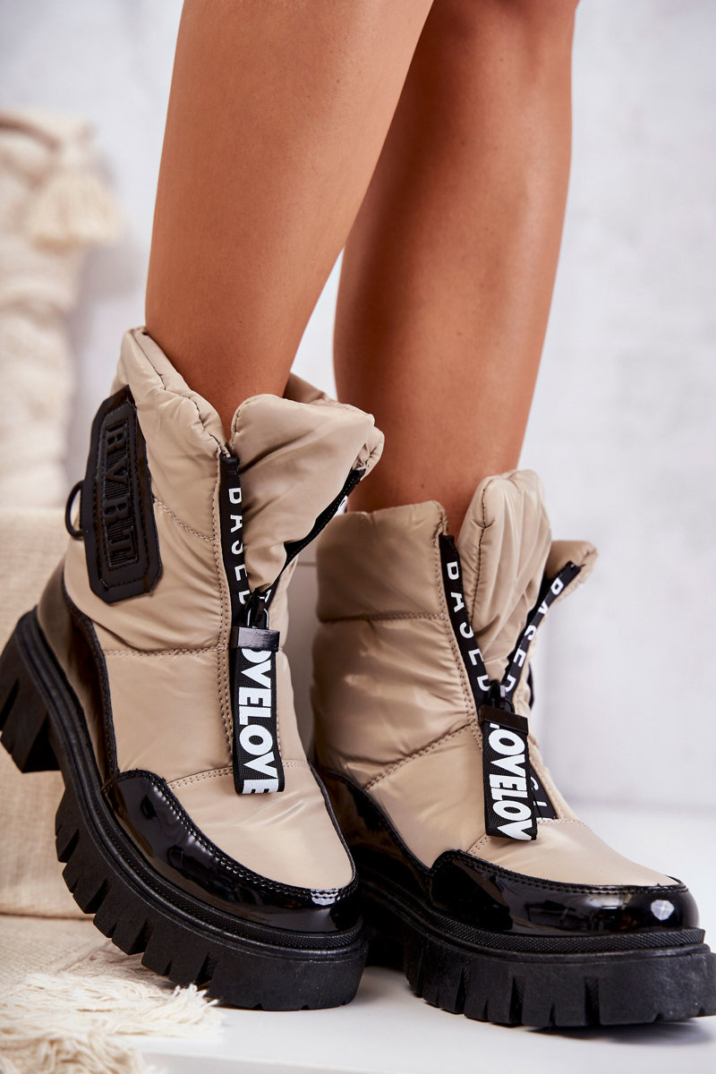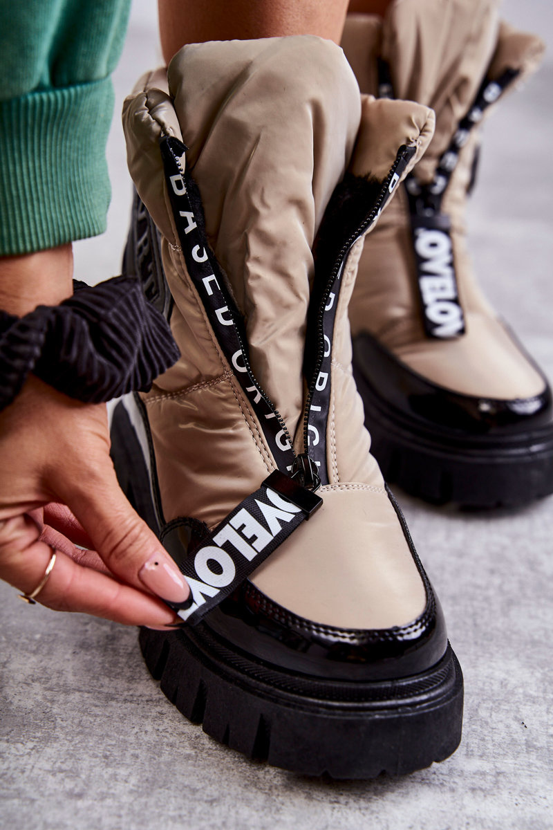 Ocieplane Botki Śniegowce Suwak Beżowo Czarne Marit