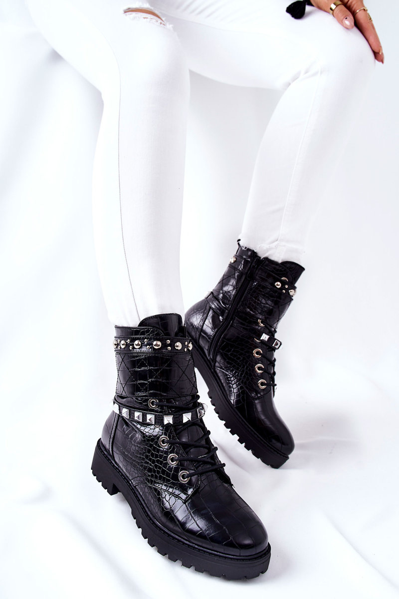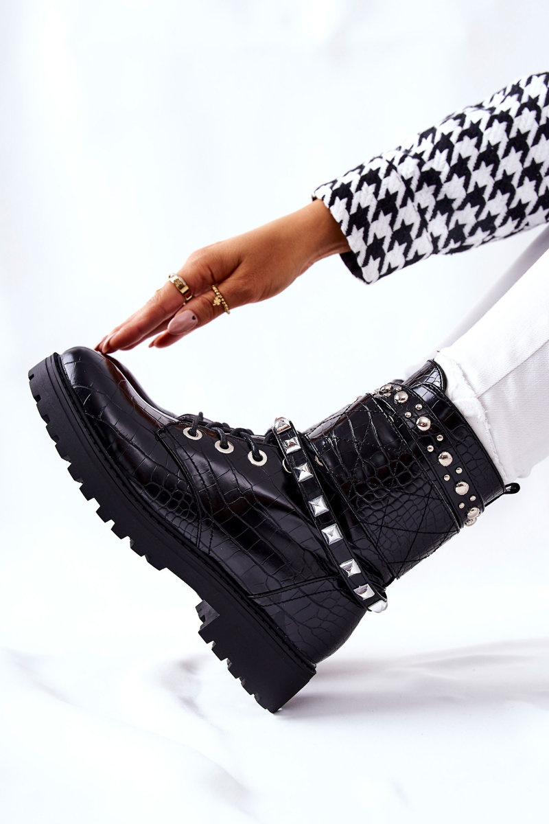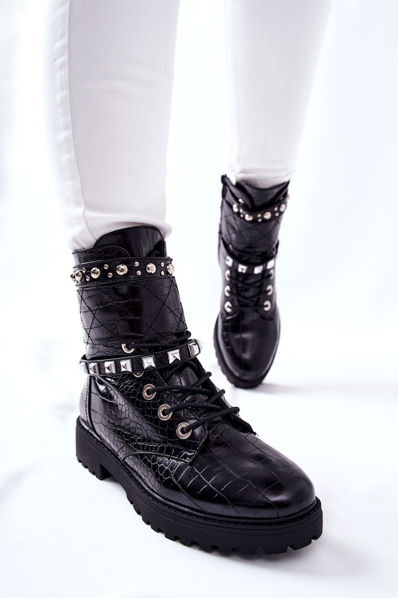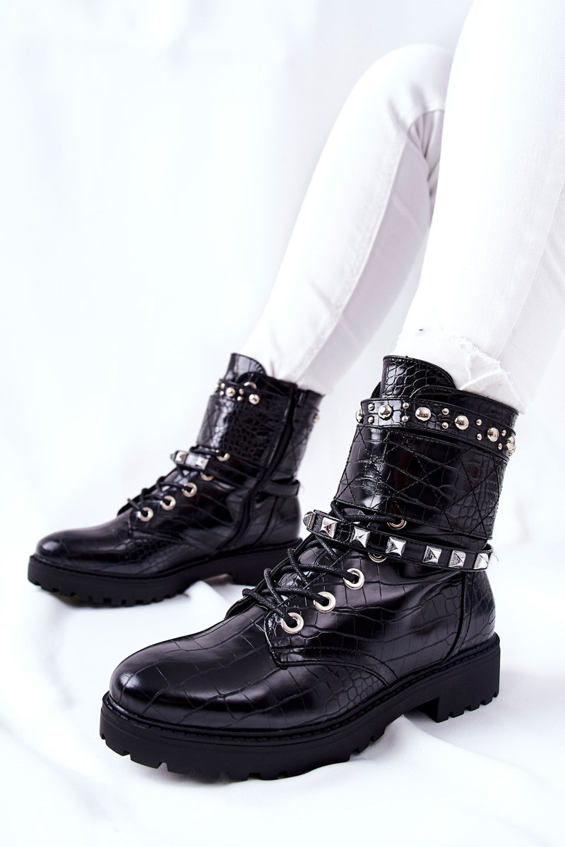 Ocieplane Botki Workery Z Ćwiekami Czarne Nephele